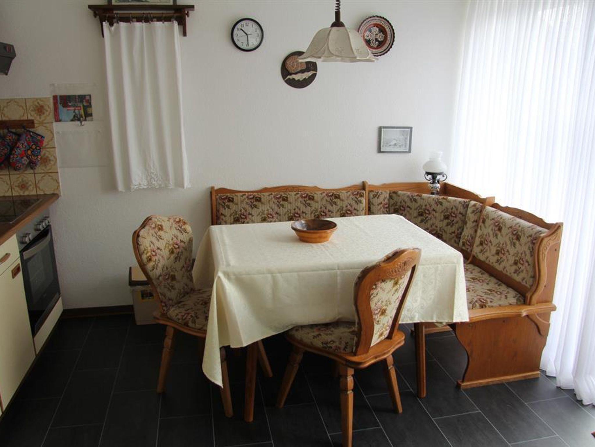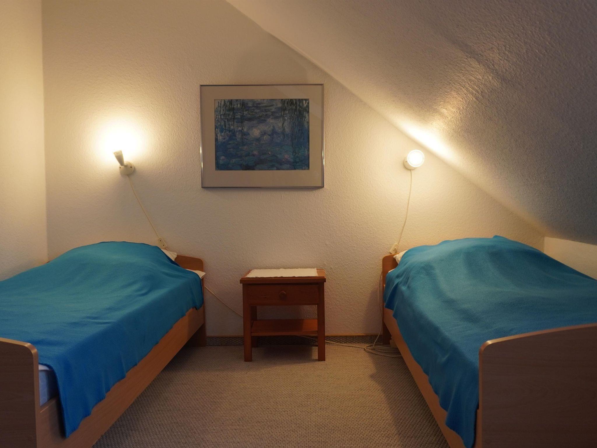 Eine gemütliche Sitzecke läd zum gemeinsamen Essen und Spielen ein. Von der Küche aus gelangen Sie auf den möblierten Balkon. Hier können Sie nach einem erfüllten Urlaubstag entspannen. Als Schlafdomizil stehen für Sie ein Zimmer mit Doppelbett und ein Zweibettzimmer bereit. Das Badezimmer ist mit Dusche/WC und einer Waschmaschine ausgestattet. Freies WLAN stellen wir unseren Gästen kostenfrei zur Verfügung.