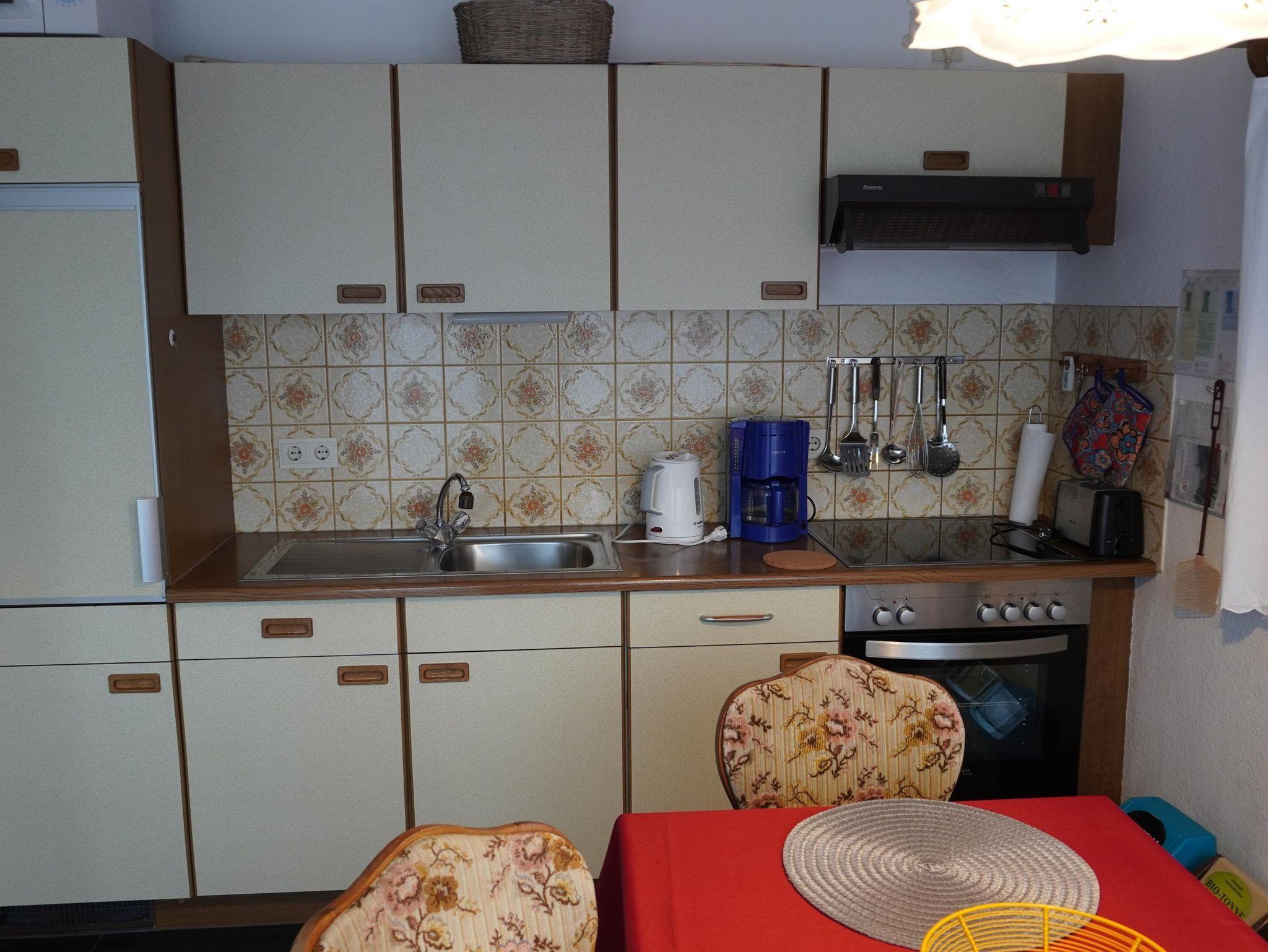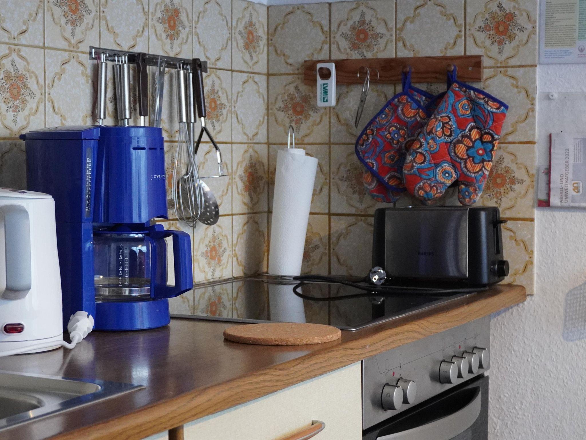 Die Küche ist separat mit diversen elektrischen Geräten, wie Backofen, Mikrowelle und Geschirrspüler ausgestattet.