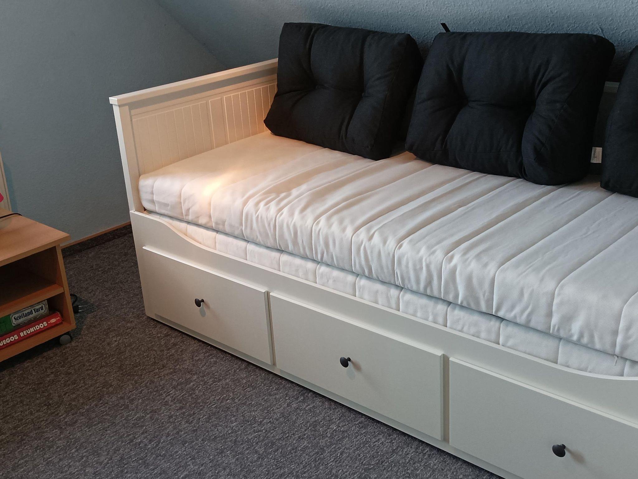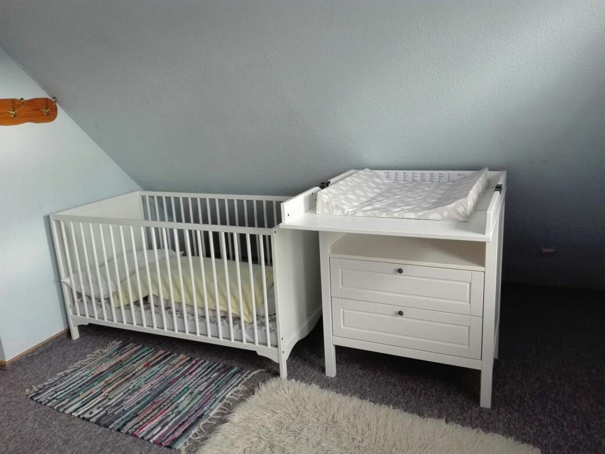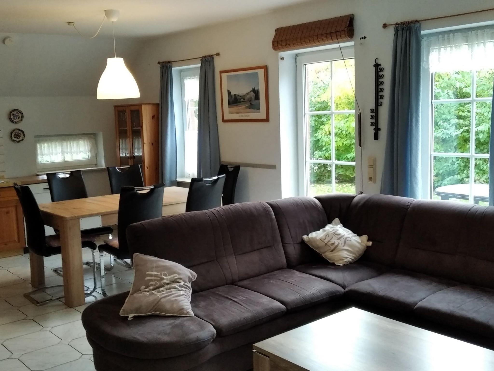 Im Erdgeschoss befindet sich ein Wohn-, Esszimmer mit F-Sat-TV, DVD-Player und Stereoanlage, sowie ein Bad mit Badewanne und integrierter Dusche, WC und Waschmaschine und das erste Schlafdomizil mit Doppelbett. Im Obergeschoss erwarten Sie dann die andere zwei Schlafdomizile (ein Doppelbett, 1 Einzelbett), sowie ein Gästebad bestehend aus WC und Waschbecken. Für unsere kleinen Gäste finden Sie im Haus ein Babybett, sowie zwei Kinderhochstühle.
