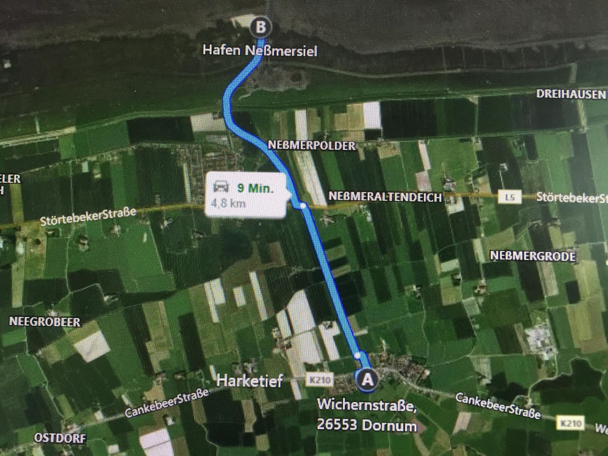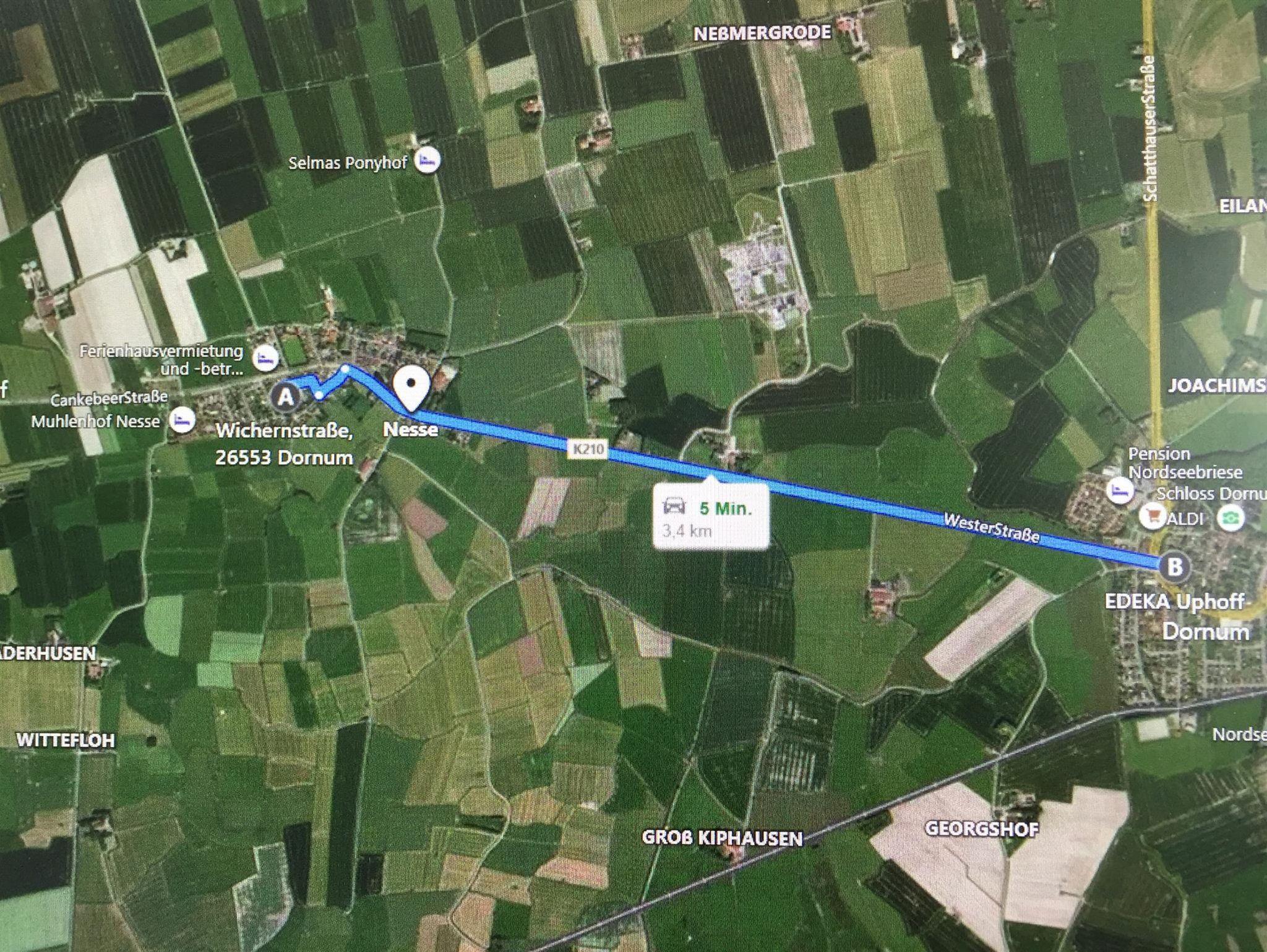 Im 2,5 km entfernten Dornum sind vielfältige Einkaufsmöglichkeiten, sei es ein Bäcker, ein Edeka-, Netto- oder Aldimarkt.