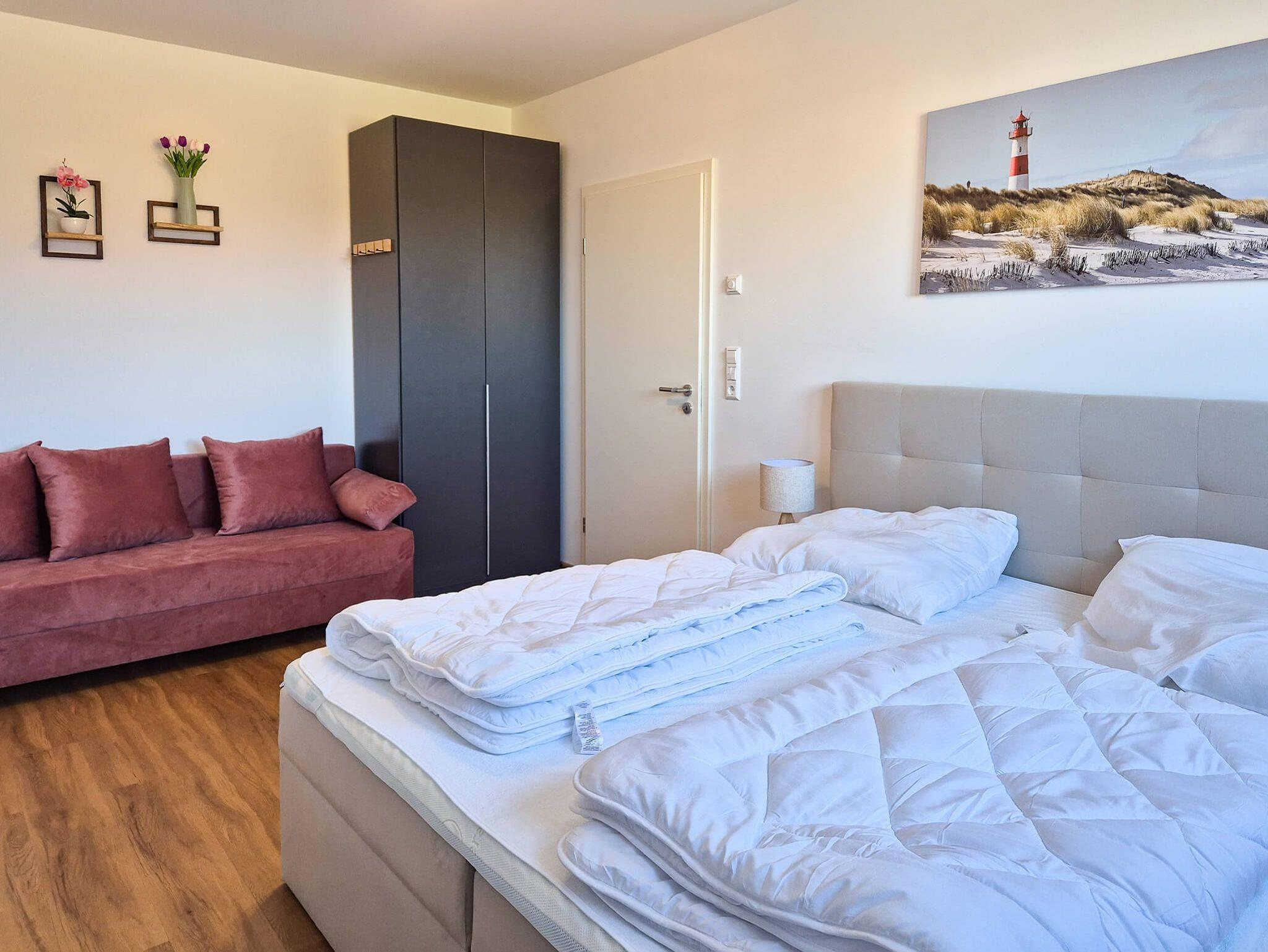• Schlafzimmer 1: Doppelbett 180x200 cm (Boxspring) + Schlafsofa (z. B. für 1-2 Kinder)