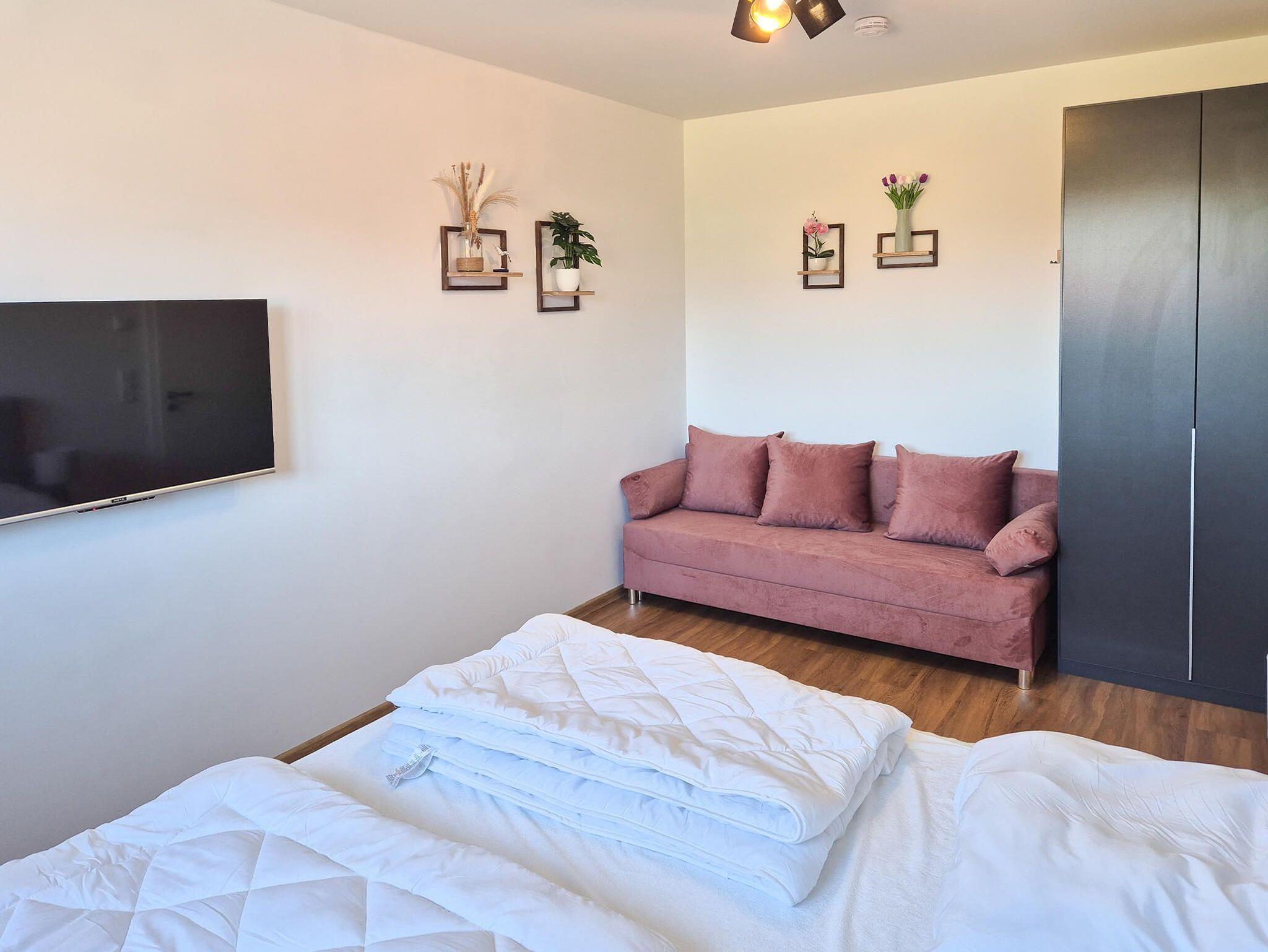 • Schlafzimmer 2: Doppelbett 180x200 cm (Boxspring) + Schlafsofa (z. B. für 1-2 Kinder)