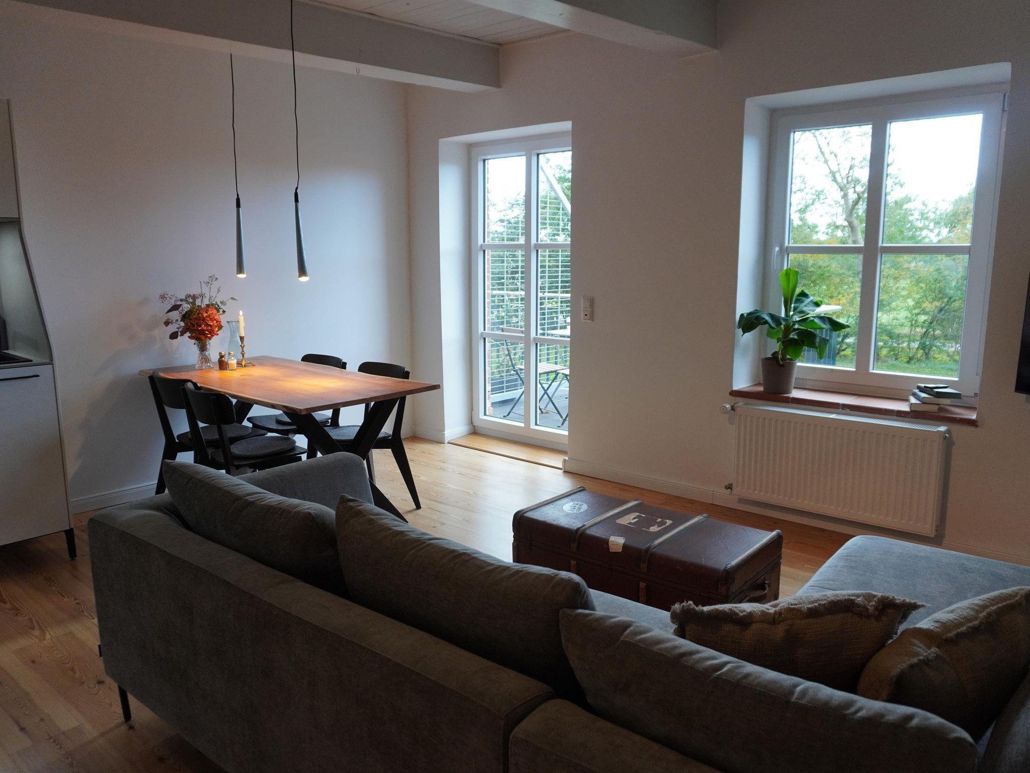 Der Wilhelminenhof ist ein ländlich gelegendes Feriendomezil. Der ehemalige Bauernhof ist modern und hochwertig eingerichtet. Genießen Sie die inspiriende Atmonsphäre um neue Kraft zu tanken und mit der Familie eine entspannte Auszeit zu genießen. Technisch ist der Hof auf dem aktuellen Stand, sodass Sie hier im Home-Office arbeiten können. Im Foyer ist eine Leseecke sowie ein Kamin vorhanden, an dem Sie zur Ruhe kommen können. Jede Wohnung verfügt über eine Fußbodenheizung (Ausnahme: Omas Küche) und einen eigenen PKW Stellplatz, eine Bushaltestelle liegt direkt vor der Hofeinfahrt. Eine Waschmaschine und einTrockner sind vorhanden und können gemeinschaftlich genutzt werden.
