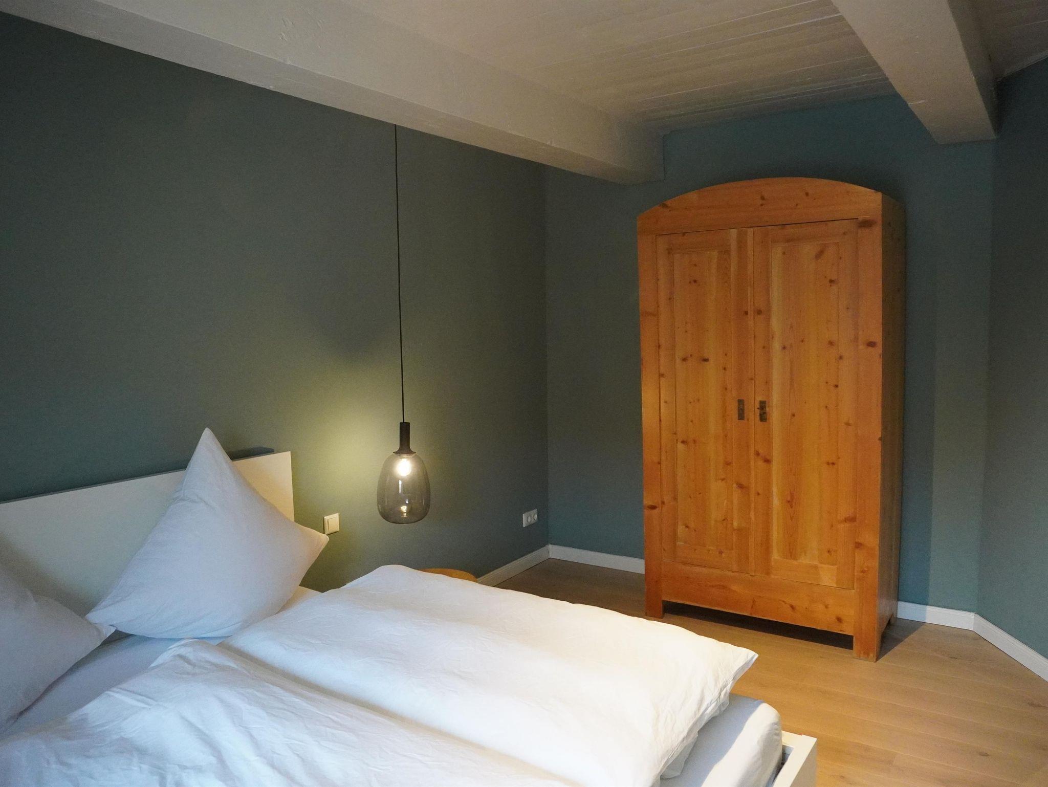 Heinis Küche: Heinis Küche ist eine 92m² große Ferienwohnung, welche die alte Küche wiederspiegelt, in der früher die Familie, Lehrlinge und Mitarbeiter gegessen haben. Die Erdgeschosswohnung verfügt über einen großen Wohn- und Essbereich mit vollausgestatteter Küche, ein großen Esstisch, eine gemütliche Couch sowie Sat-TV. Als Schlafmöglichkeiten dienen ein Doppelzimmer und ein Zweibettzimmer. Es ist ein Badezimmer mit Dusche und WC vorhanden sowie ein sepertaes WC. Die Terrasse ist nach Südwesten ausgerichtet. Heinis Küche bietet genügend Platz um als Eventlocation genutzt zu werden.