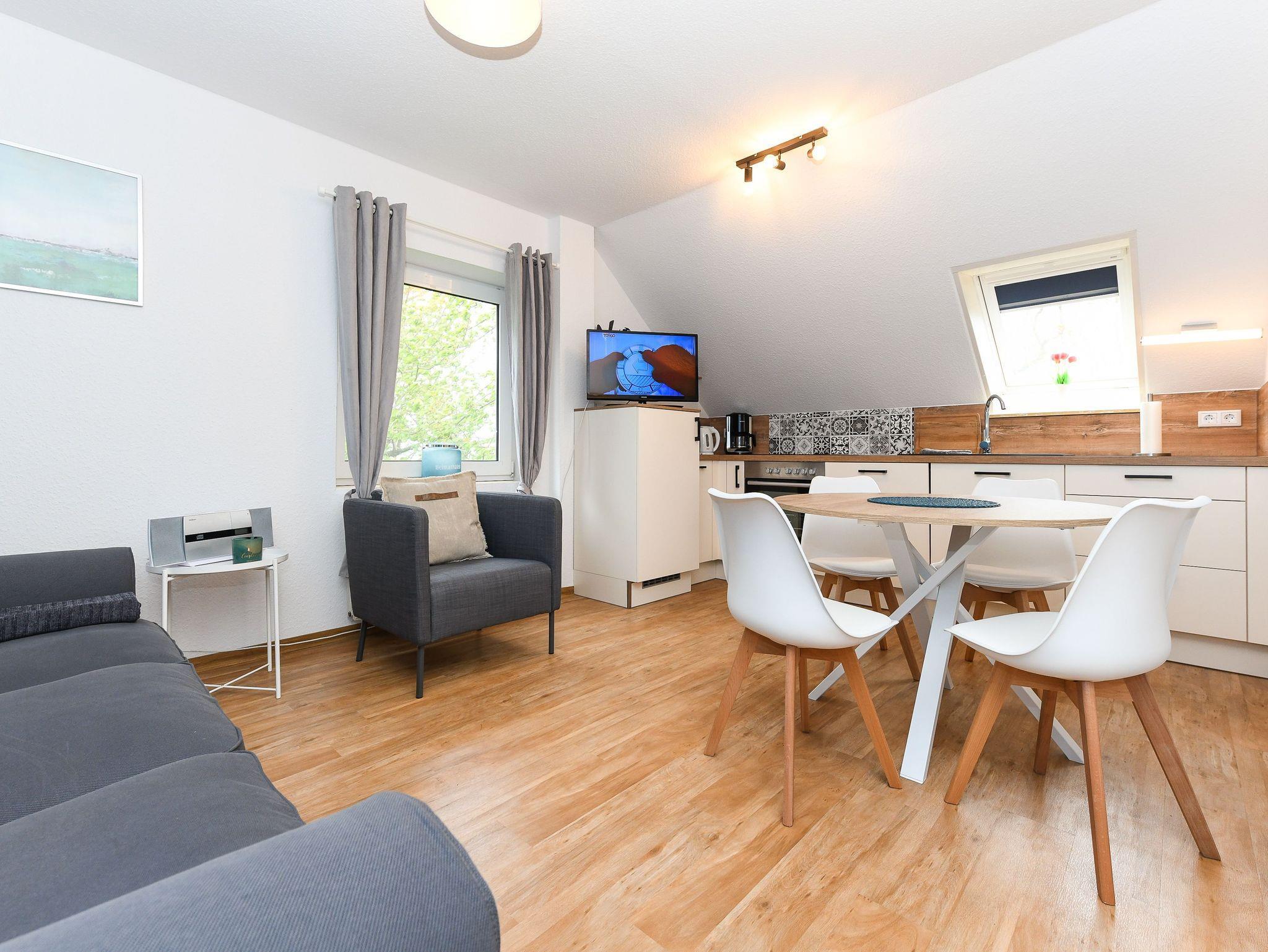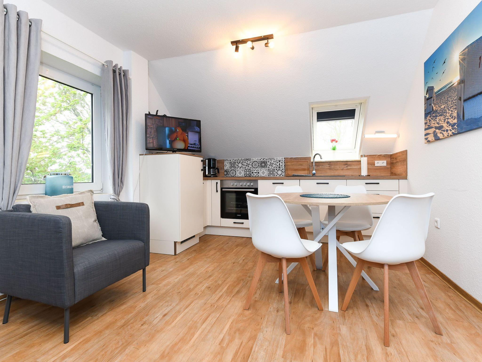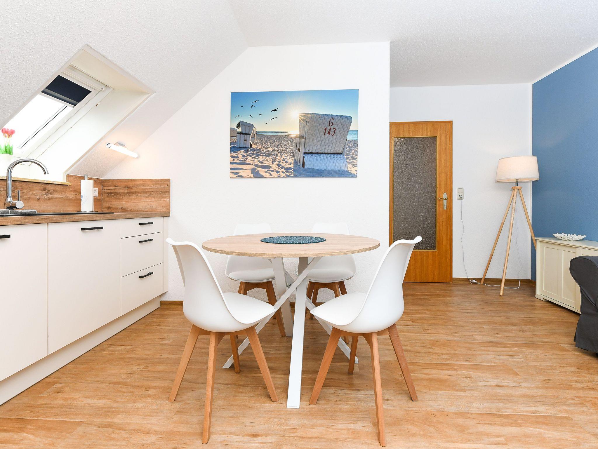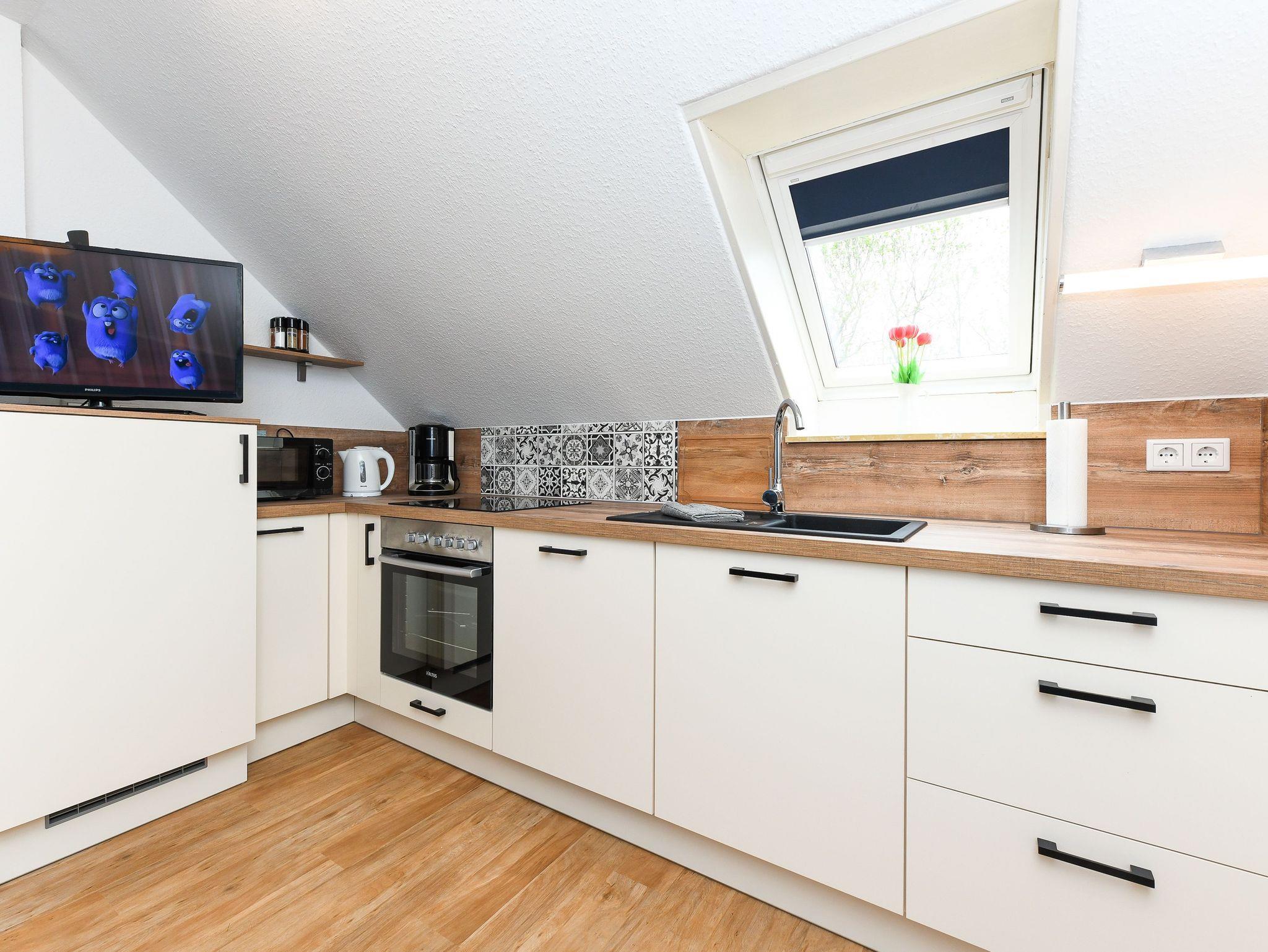 Größe ca. 60 Quadratmeter, Wohnzimmer, Küche, Schlafzimmer, zweites separates Schlafzimmer/Kinderzimmer´, Badezimmer mit Dusche,Waschtisch und WV, Obergeschoss, optimal für 2 bis 3 Personen und zusätzlich ein Kleinkind.