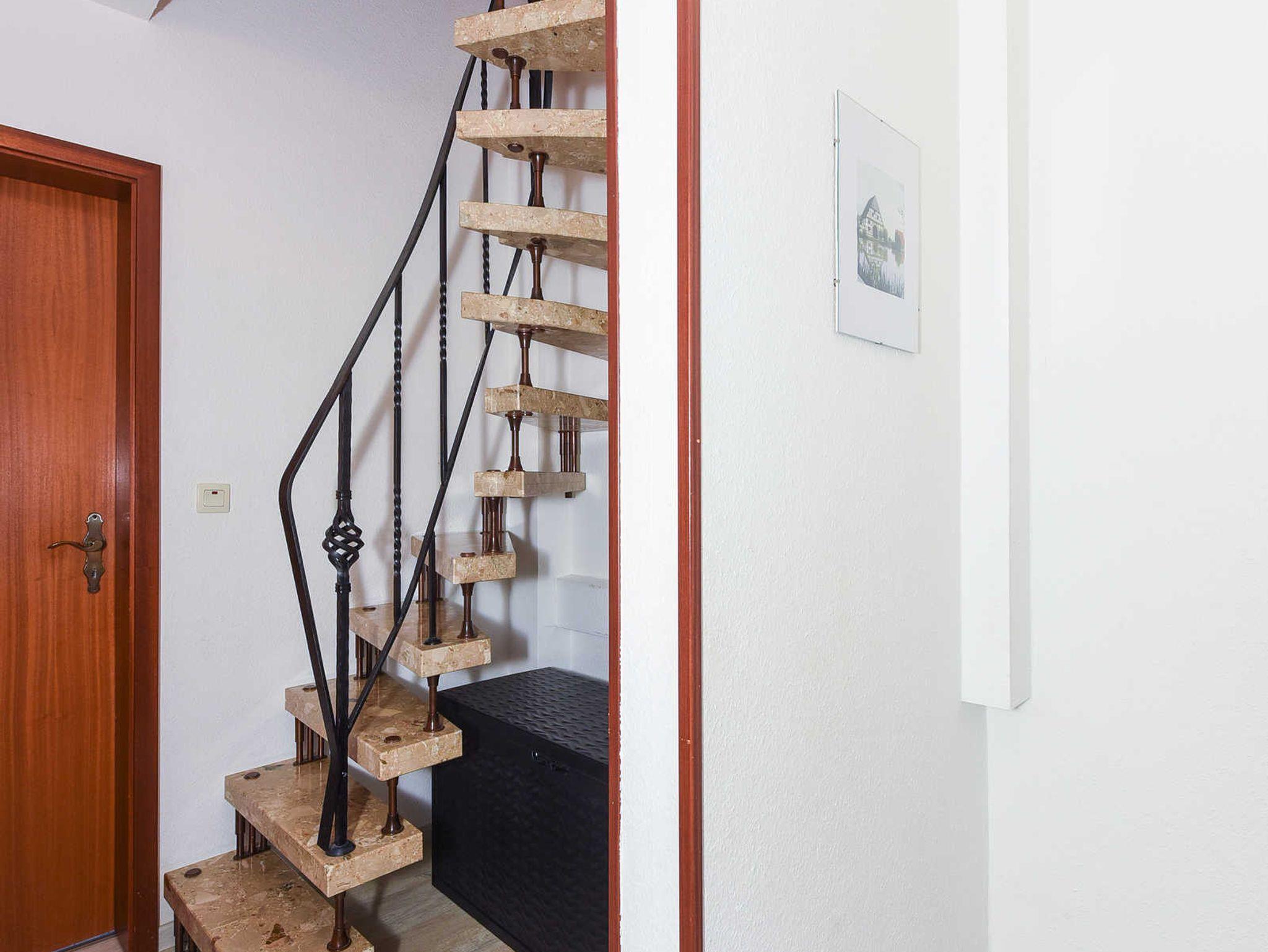 Größe: ca. 85 Quadratmeter, Wohnzimmer, Küche, Schlafzimmer, zweites separates Schlafzimmer/Kinderzimmer, drittes separates Schlafzimmer/Kinderzimmer, Badezimmer mit Dusche, Waschtisch und WC, Badezimmer mit Badewanne, Waschtisch und WC, Erdgeschoss, Obergeschoss, Terrasse, Koffer-/Abstellraum, optimal für 2 bis 7 Personen und zusätzlich ein Kleinkind. Es stehen 2 Pkw-Parkplätze zur Verfügung. Die Schlafzimmer befinden sich im 1. und 2. Obergeschoss.