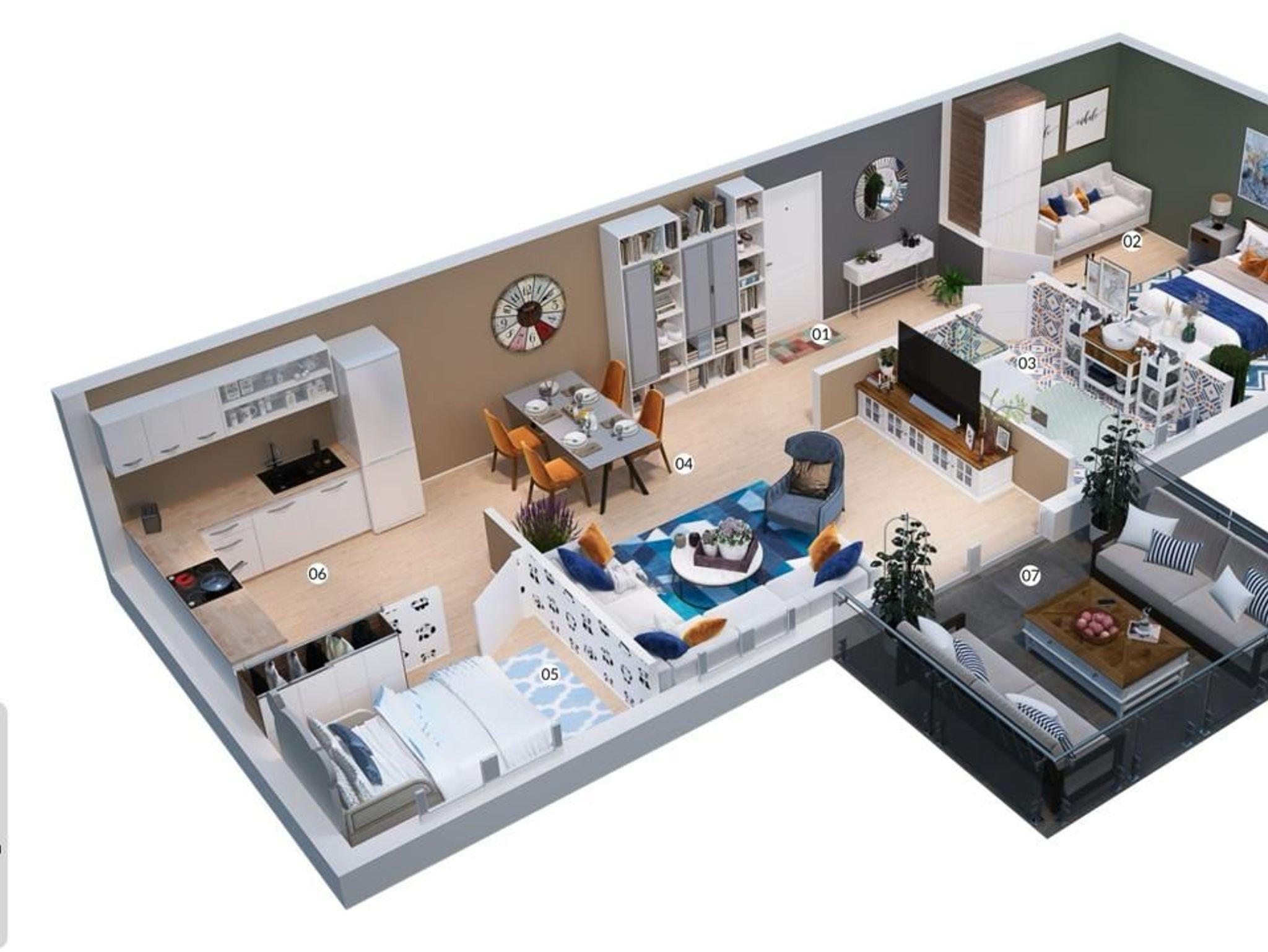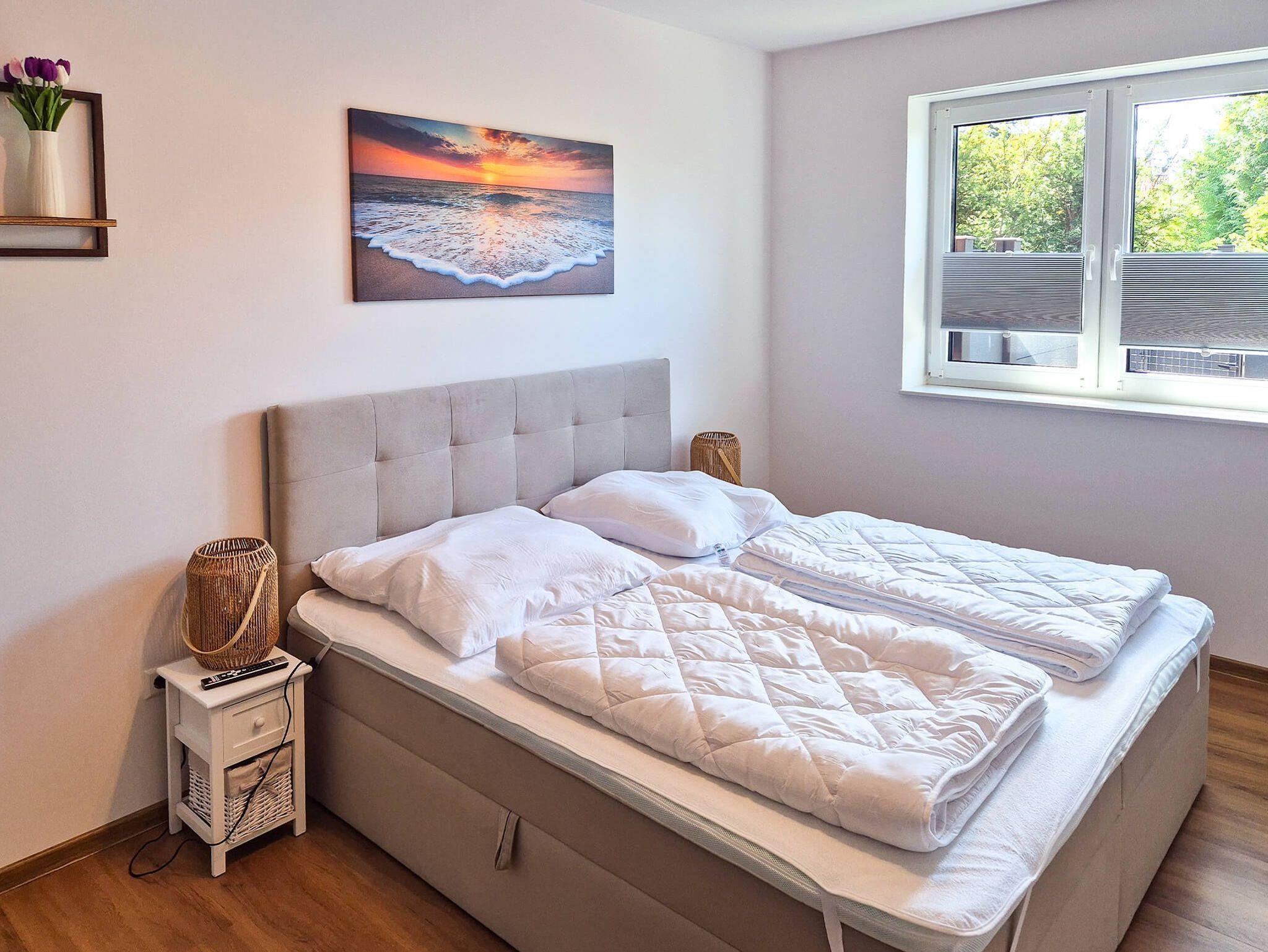 • Schlafzimmer 1: Doppelbett 180x200 cm (Boxspring) + Schlafsofa (z. B. für 1-2 Kinder)