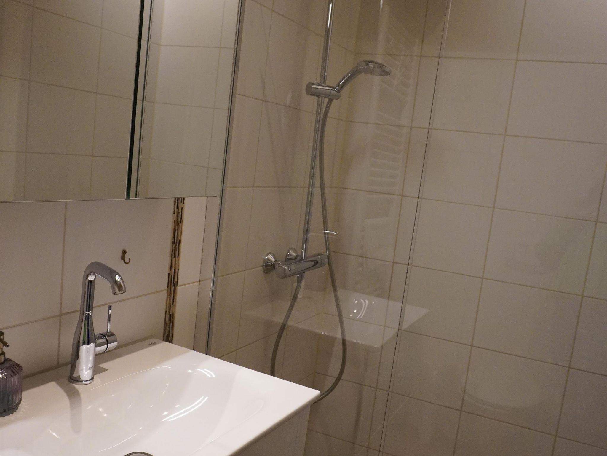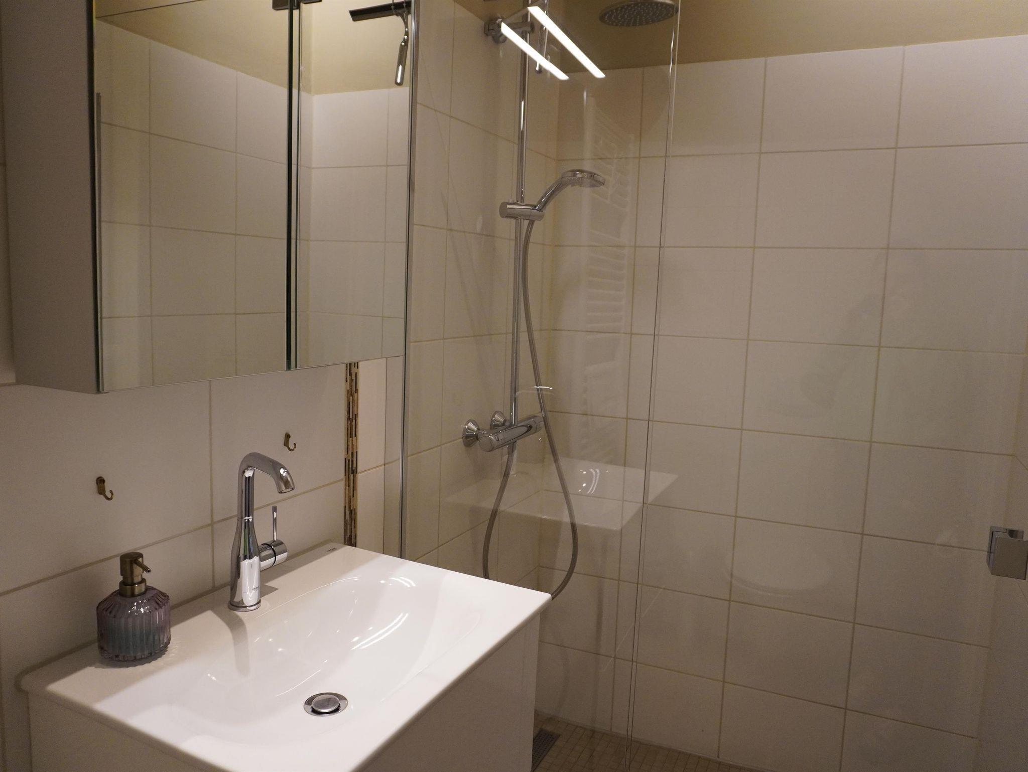 Studio: Das Studio ist mit 34m² die kleinste aller sieben Wohnungen. Das lichtdurchflutete Zimmer ist mit einem kombinierten Wohn- und Schlafbereich einen Hotelzimmer nachempfunden. Die kleine Küchenniesche bietet dennoch genügend Platz zum Kochen. Das Badezimmer ist mit einem WC und einer Dusche ausgestattet.