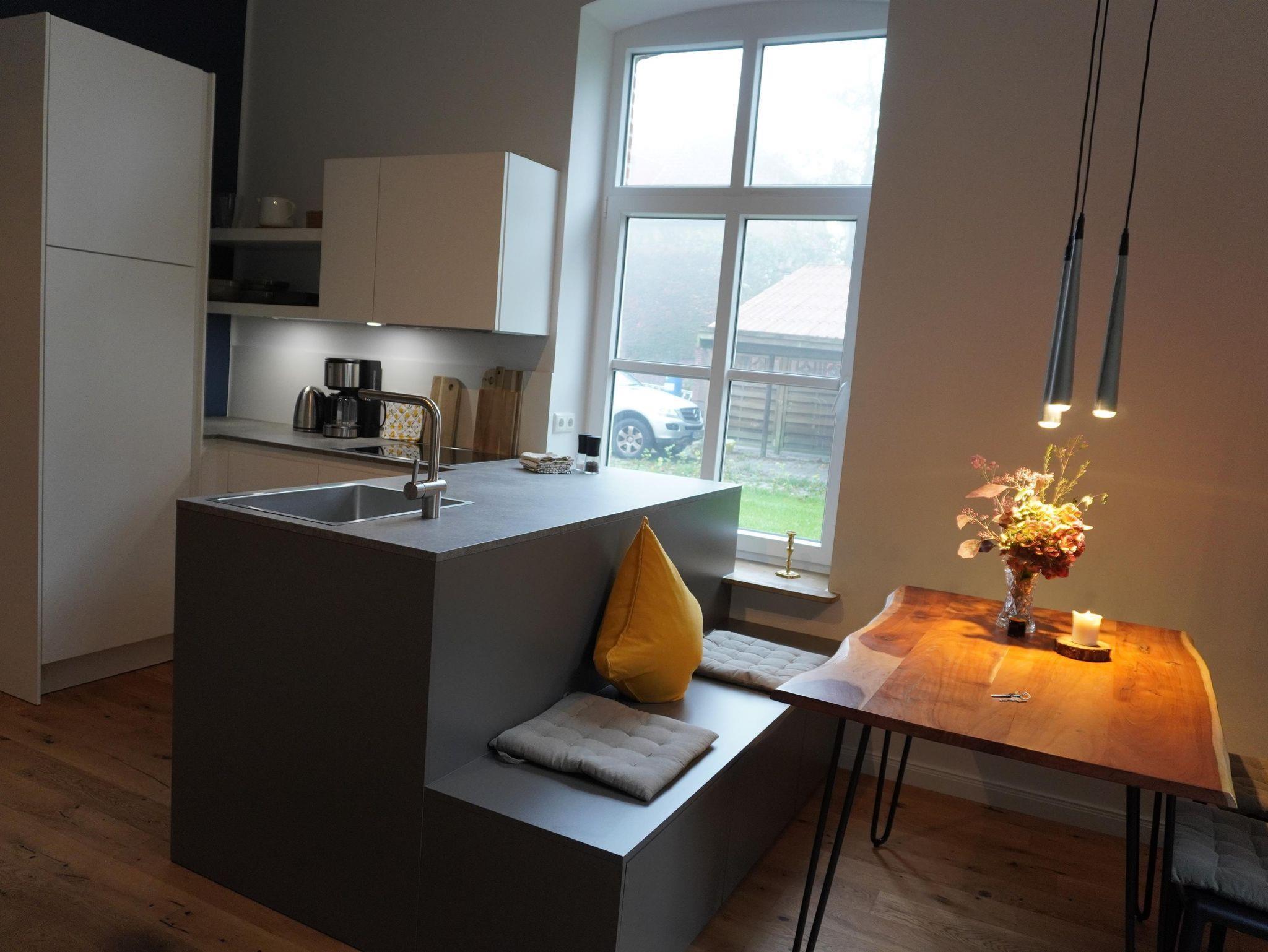 Der Wilhelminenhof ist ein ländlich gelegendes Feriendomezil. Der ehemalige Bauernhof ist modern und hochwertig eingerichtet. Genießen Sie die inspiriende Atmonsphäre um neue Kraft zu tanken und mit der Familie eine entspannte Auszeit zu genießen. Technisch ist der Hof auf dem aktuellen Stand, sodass Sie hier im Home-Office arbeiten können. Im Foyer ist eine Leseecke sowie ein Kamin vorhanden, an dem Sie zur Ruhe kommen können. Jede Wohnung verfügt über eine Fußbodenheizung (Ausnahme: Omas Küche) und einen eigenen PKW Stellplatz, eine Bushaltestelle liegt direkt vor der Hofeinfahrt. Eine Waschmaschine und einTrockner sind vorhanden und können gemeinschaftlich genutzt werden.