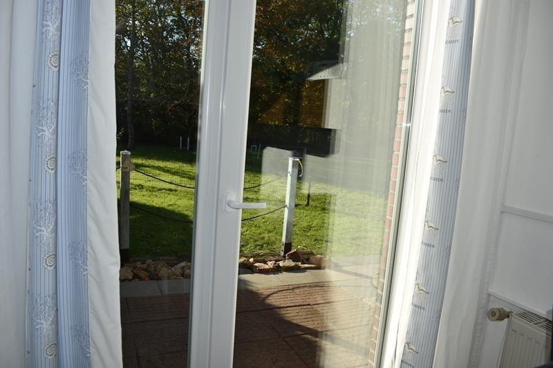 Ein besonderes Highlight dieser Ferienwohnung ist die sonnige Terrasse, die zu entspannenden Stunden im Freien einlädt. Genießen Sie Ihr Frühstück im Freien oder lassen Sie den Tag bei einem Glas Wein ausklingen. Der angrenzende, komplett eingezäunte Garten mit einer Fläche von 50 Quadratmetern ist ideal für Ihren vierbeinigen Freund, der hier sicher und frei spielen kann. Die Abgeschiedenheit des Gartens sorgt zudem für Ruhe und Privatsphäre.