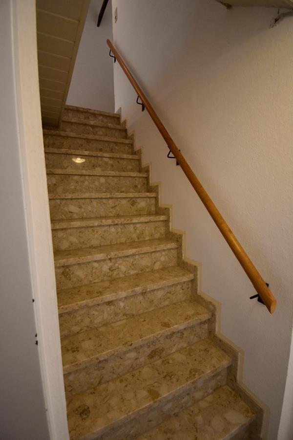 Der Zugang zum Badezimmer und zu unserer Ferienwohnung erfolgt über eine Treppe mit 15 Stufen. Es ist wichtig, dies bei der Buchung zu beachten, insbesondere wenn Sie mit kleineren Hunden oder älteren Familienmitgliedern reisen, da die Treppe etwas steiler ist und daher nicht für jeden geeignet ist. Die Treppe ist jedoch gut gesichert und gut beleuchtet.