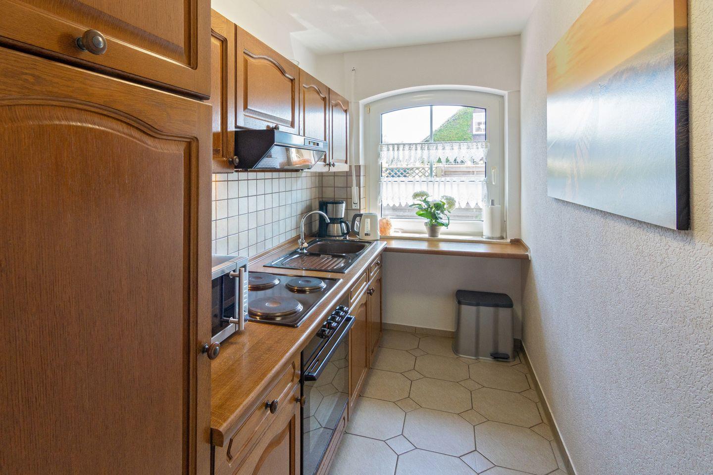 Die Ferienunterkunft „Biene“ bietet auf 85?m² Platz für bis zu vier Personen. Das gemütliche Wohnzimmer mit Sitzecke, großem TV und Kaminofen lädt zum Entspannen ein – ideal für kuschelige Abende. Die geschlossene, voll ausgestattete Küche eignet sich perfekt für gemeinsame Kochabende. Zwei Schlafzimmer und zwei Bäder sorgen für Komfort und Privatsphäre. Genießen Sie die Terrasse und den eingezäunten Garten. Zwei Hunde sind herzlich willkommen!