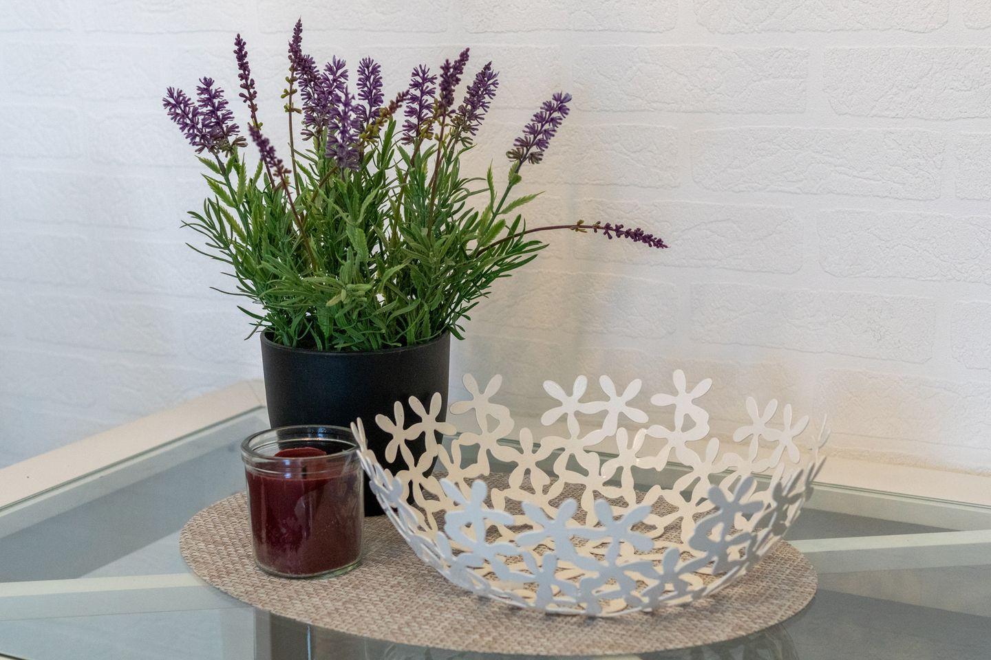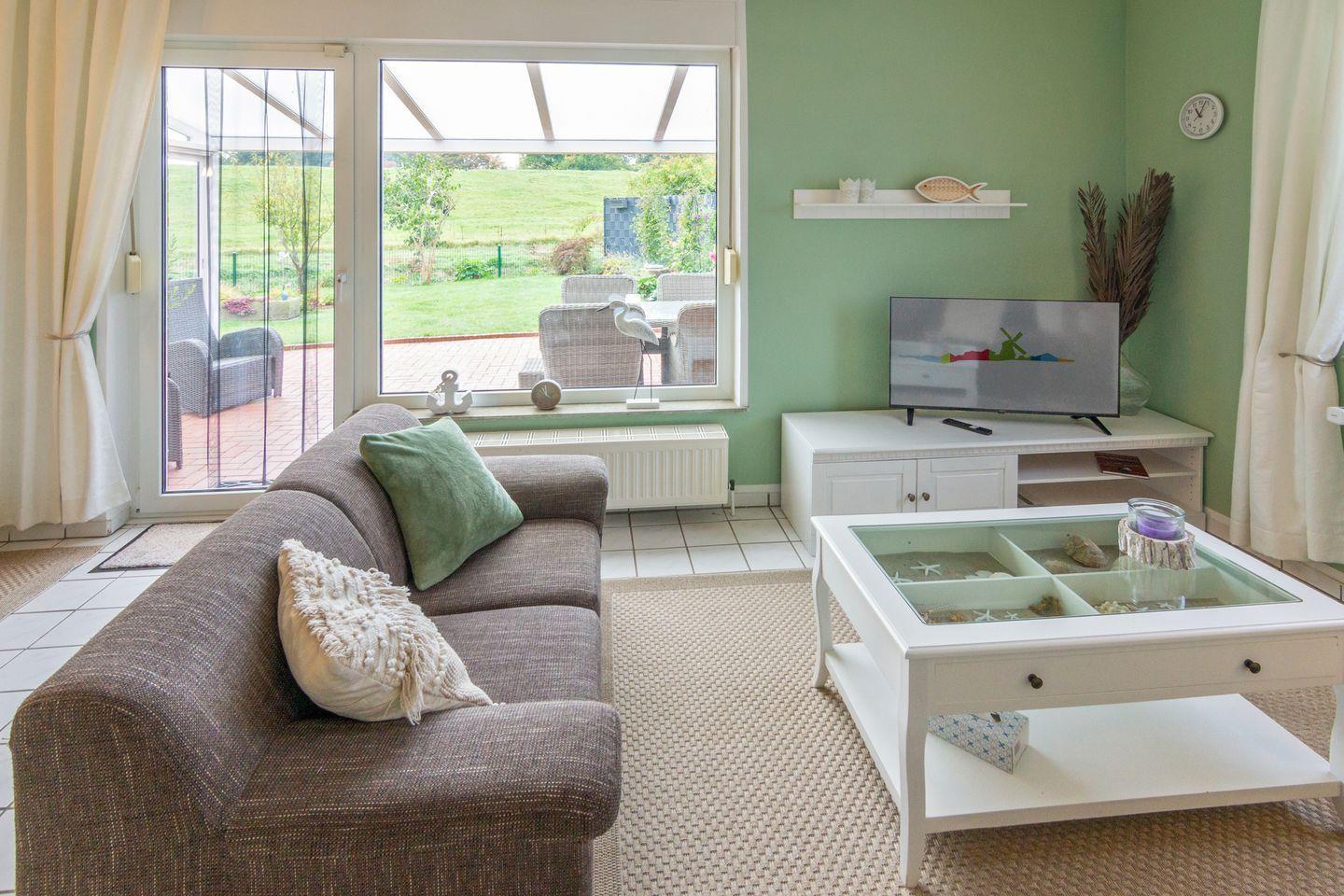 Die separate Küche ist komplett ausgestattet: Ceranherd, Backofen, Mikrowelle, Kühlschrank, Gefrierschrank, Kaffeemaschine und alle nötigen Utensilien stehen bereit. Ein Essbereich sowie ein gemütliches Wohnzimmer mit Sofa, Satelliten-TV, Büchern und kostenfreiem WLAN laden zum Verweilen ein.