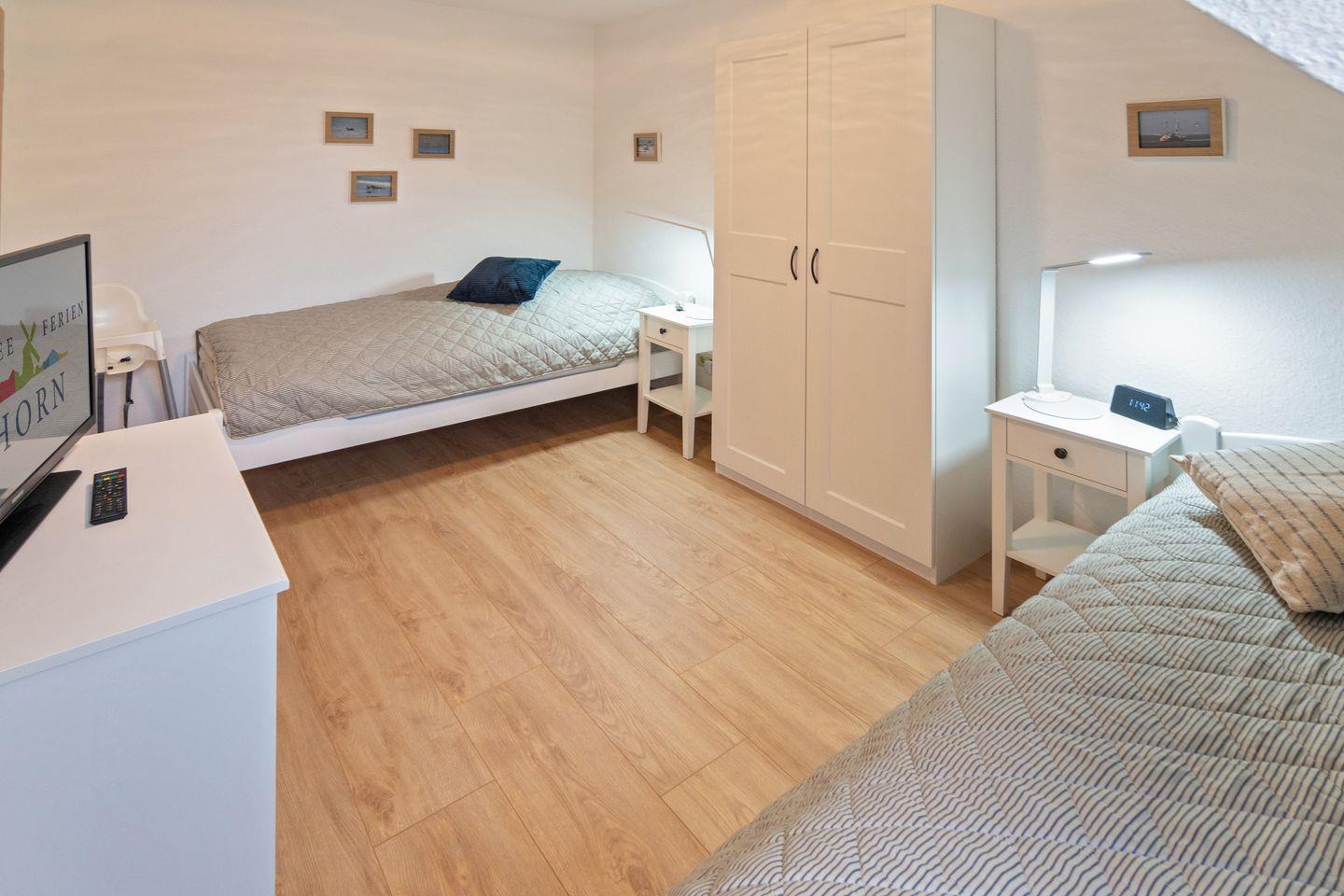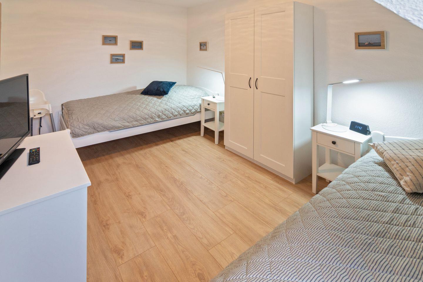 Das gepflegte Reihenhaus in Dornumergrode verfügt im Erdgeschoss über einen Wohn- und Essbereich mit separater, voll ausgestatteter Küche und ein Duschbad mit WC. Im Obergeschoss befindet sich ein Schlafzimmer mit einem Doppelbett, ein weiteres Schlafzimmer mit zwei Einzelbetten und ein Wannenbad mit WC. Über eine gut begehbare Treppe gelangen Sie ins ausgebaute Dachgeschoss. Hier befindet sich ein weiteres Einzelbett. Zum Haus gehört eine Terrasse und ein eigener PKW-Stellplatz.