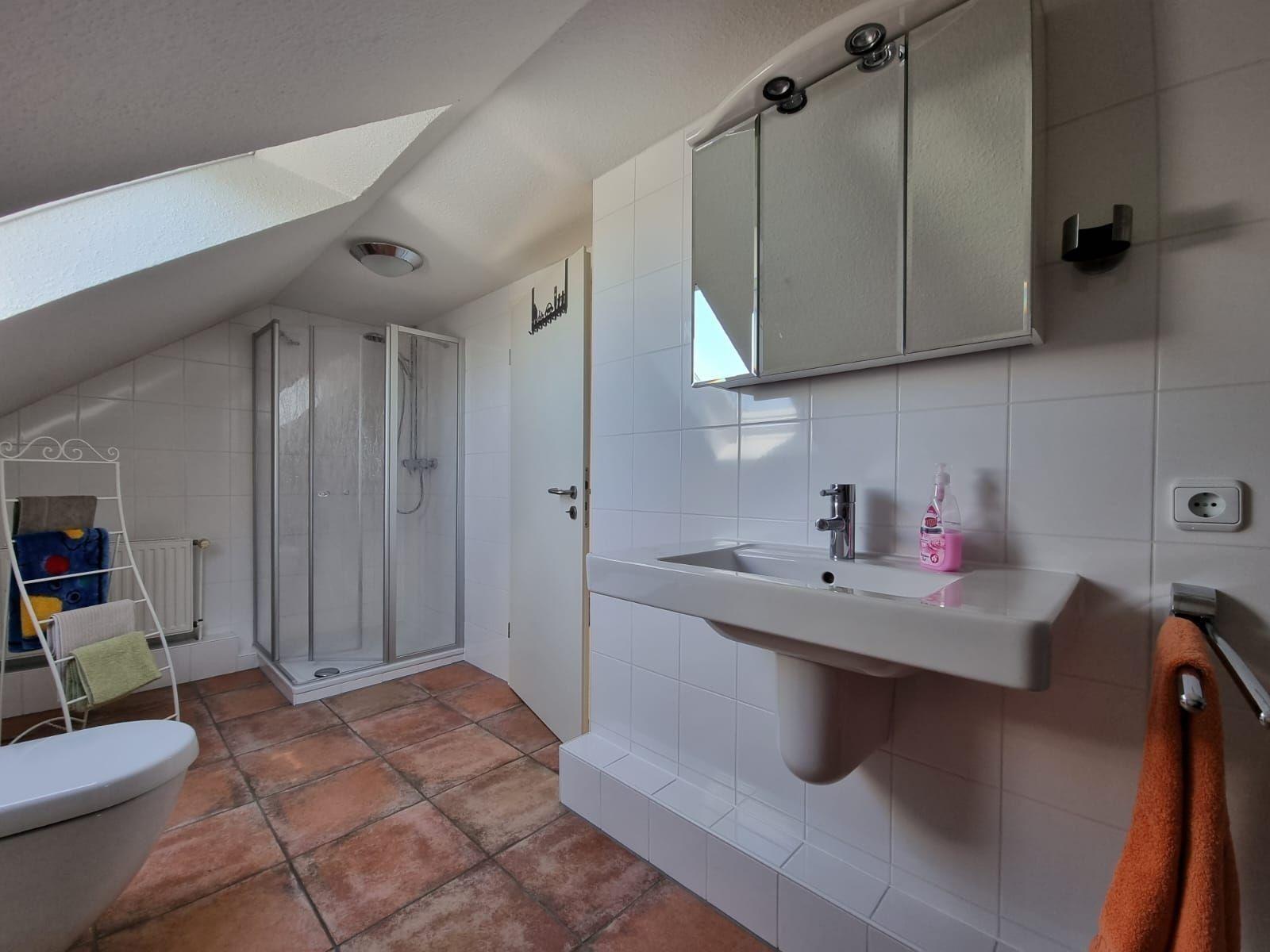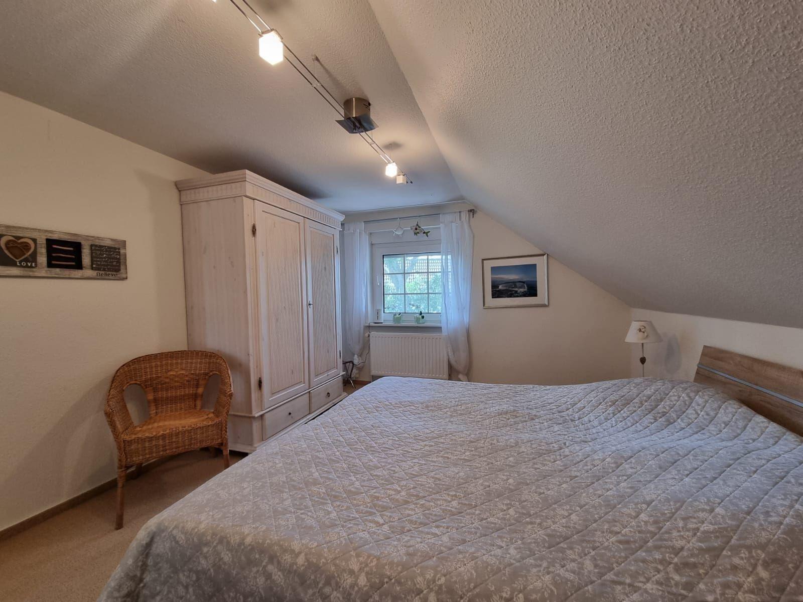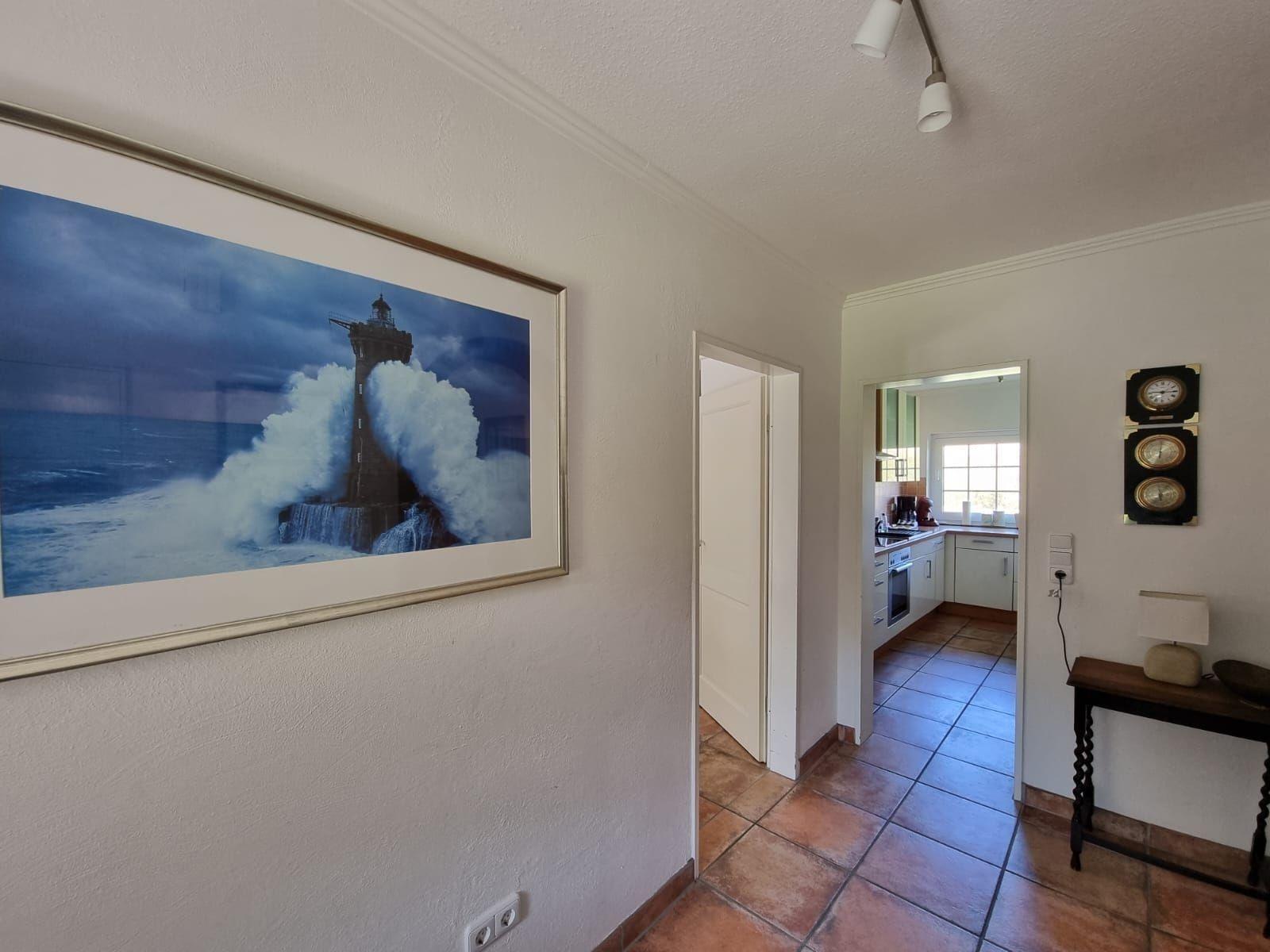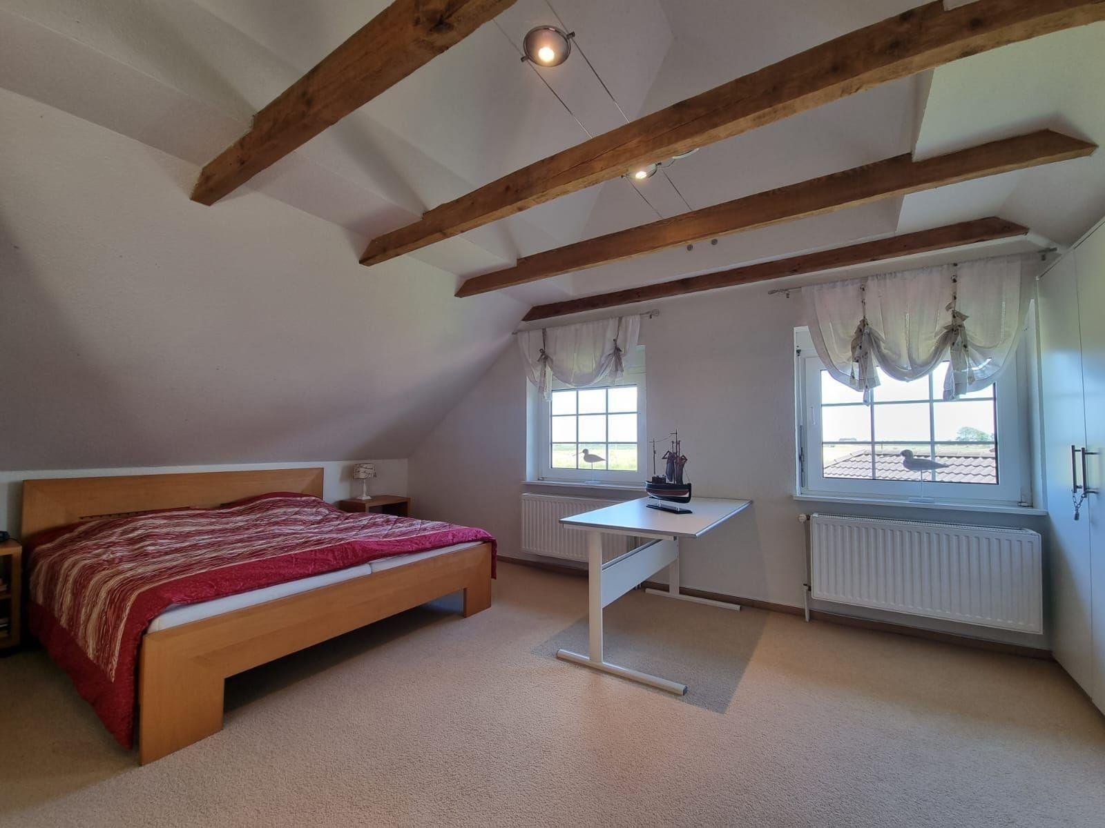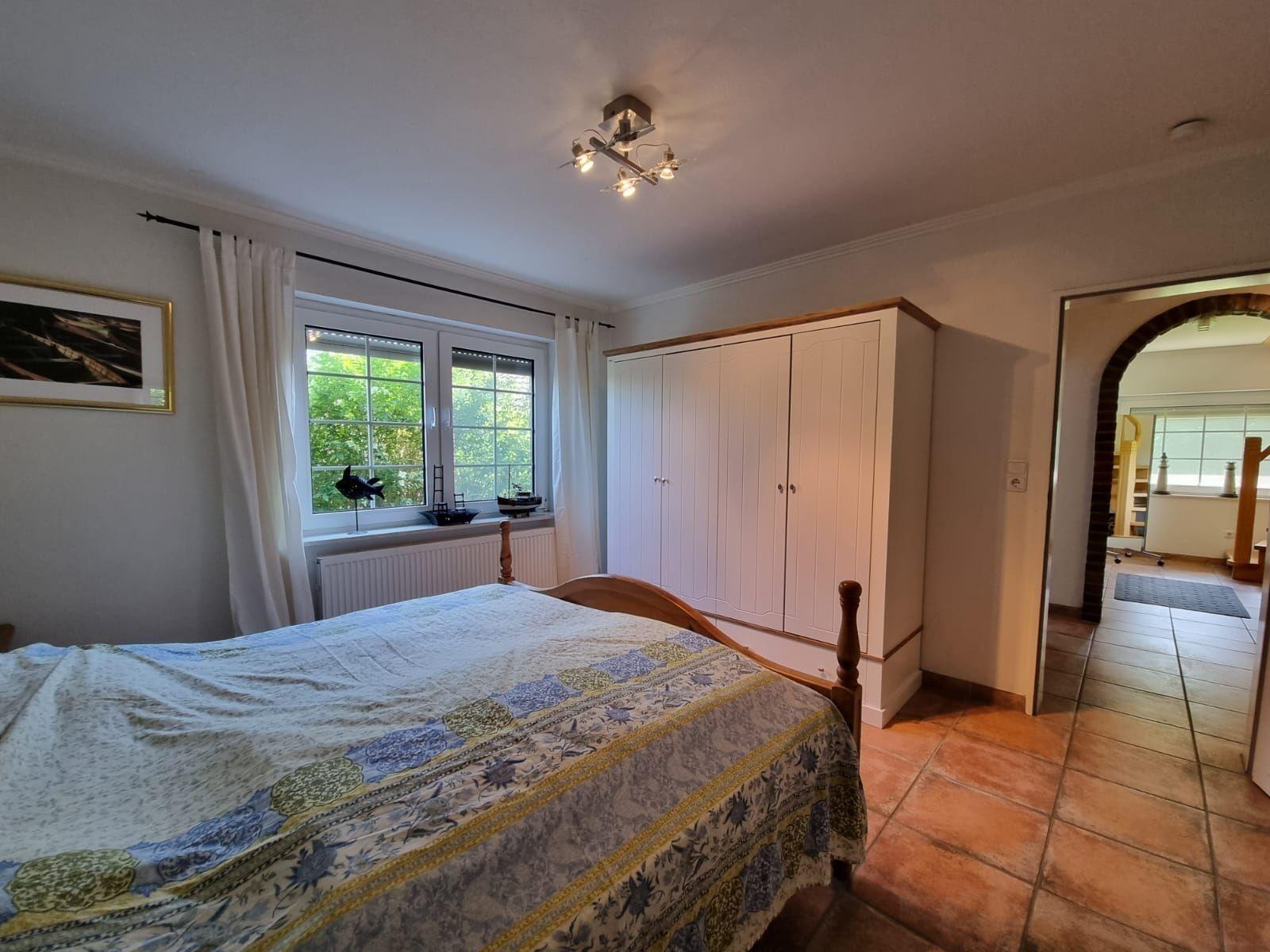 Diese Ferienwohnung bietet großzügigen Raum und umfassende Ausstattung für einen komfortablen Aufenthalt. Fünf Schlafzimmer, darunter vier Doppelzimmer und zwei Einzelbetten sowie zwei Kinderbetten, gewährleisten viel Platz für Familien oder Gruppen. Zwei modern gestaltete Badezimmer, eines mit Duschbad und das andere mit Badewanne, bieten zusätzlichen Komfort.
