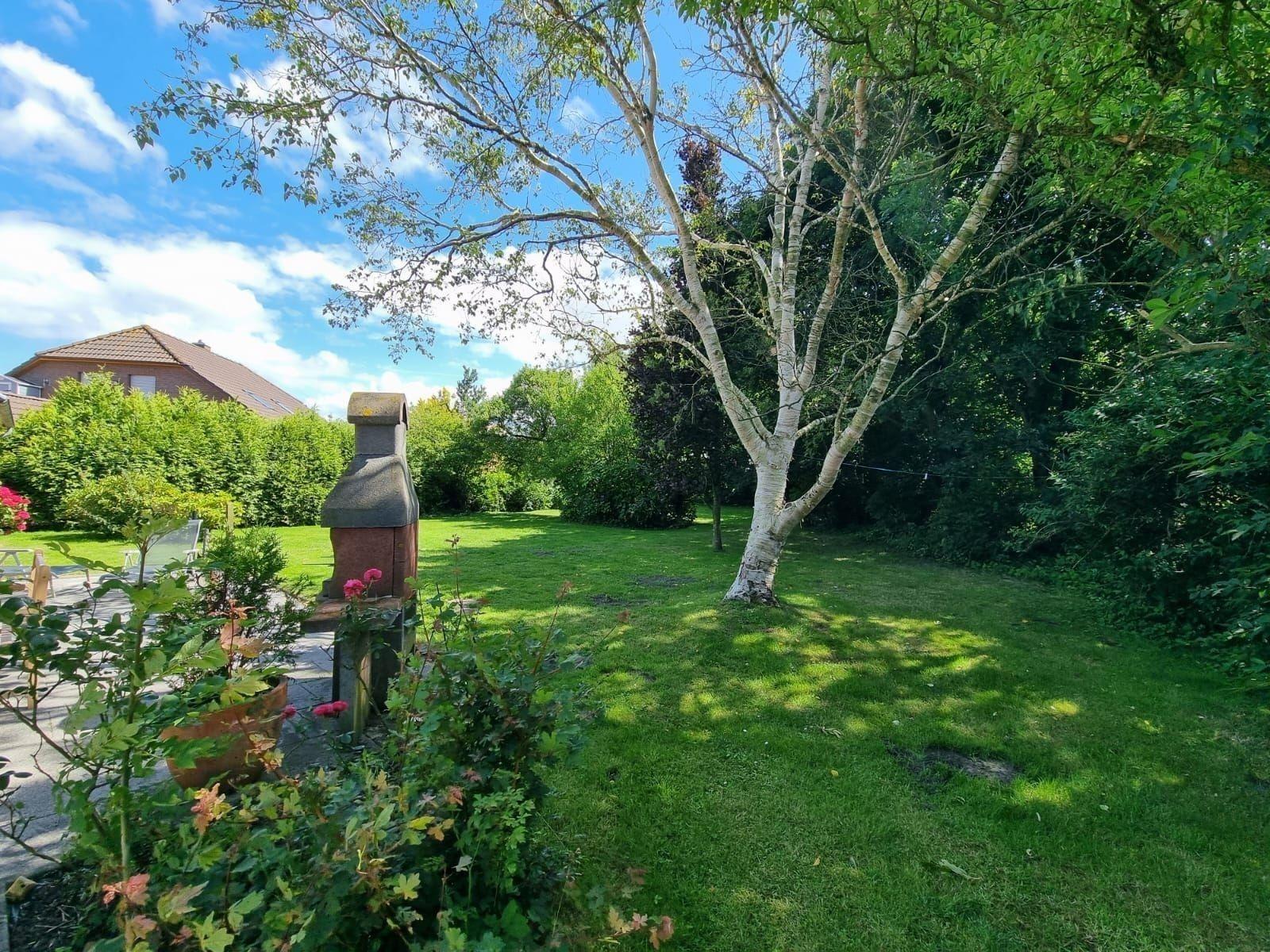 Die Ferienwohnung bietet einen eigenen Garten mit einer großzügigen Liegewiese, ideal zum Entspannen. Außerhalb lädt eine Terrasse mit Gartenliegen und Liegestühlen zum Verweilen ein. Ein Grill steht zur Verfügung, um gesellige Abende in der Natur zu genießen. Brennholz sorgt für gemütliche Stunden am Feuer. Hier findet man Privatsphäre und Entspannung pur.