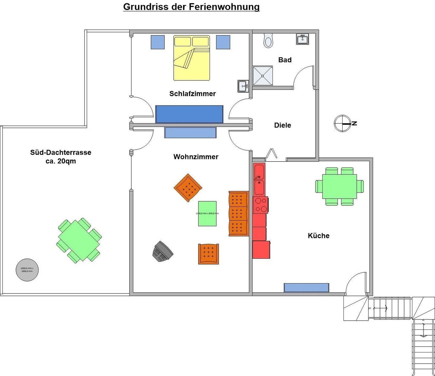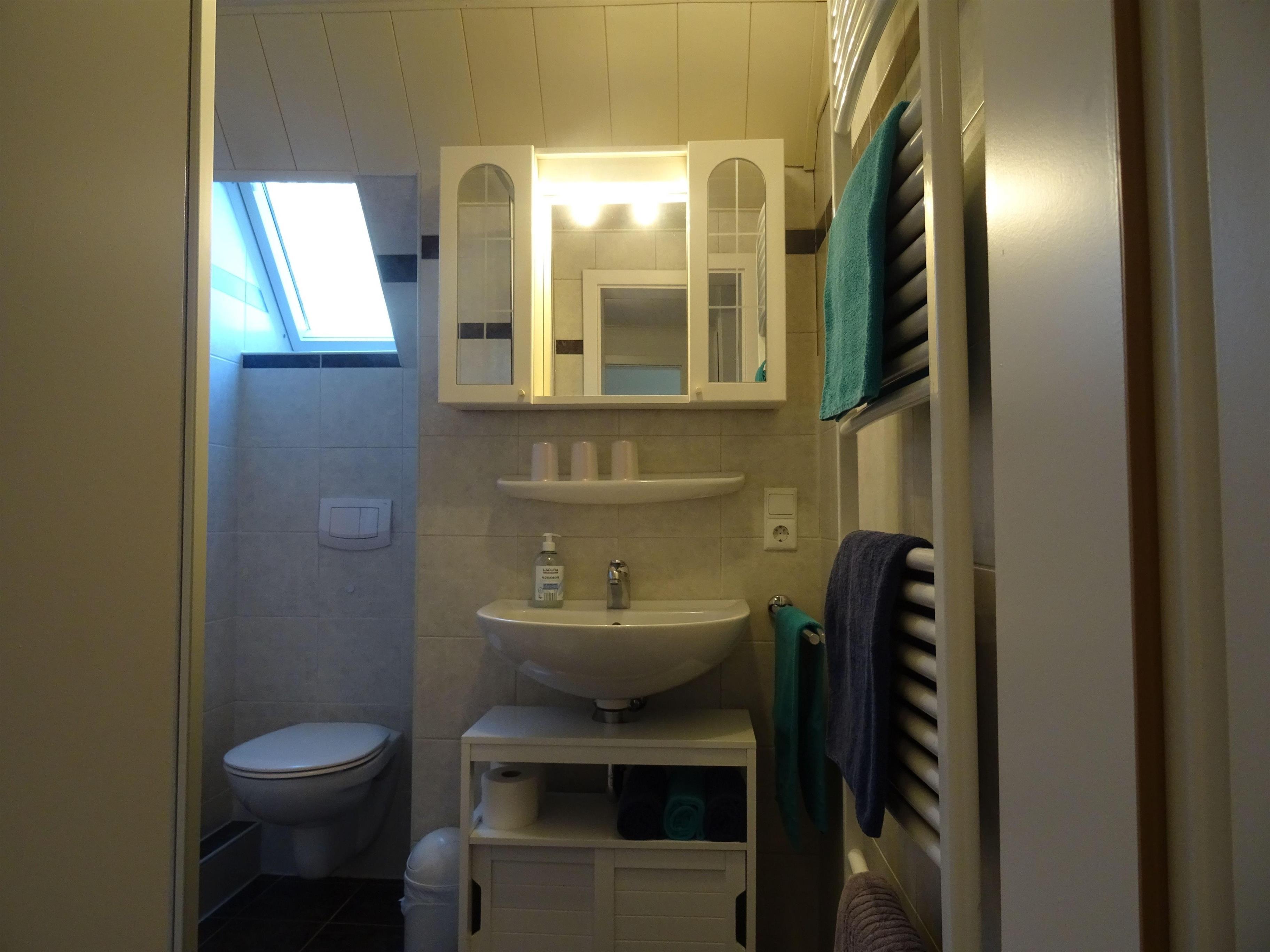 Die ca. 50 qm große Ferienwohnung verfügt über ein Wohnzimmer mit Schlafcouch, eine Küche, ein Schlafzimmer mit Doppelbett und Kleiderschrank und ein Badezimmer. Die Küche ist mit Backofen, Herd, Kühlschrank und vielem mehr ausgestattet. Im Badezimmer finden Sie eine Dusche und ein WC.