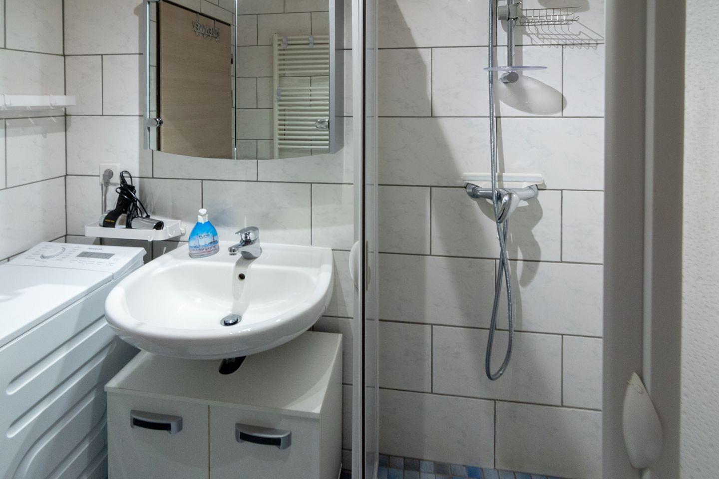 Das Badezimmer ist modern mit Dusche, Waschbecken und WC ausgestattet. Die Wohnung wurde zuletzt 2025 renoviert.