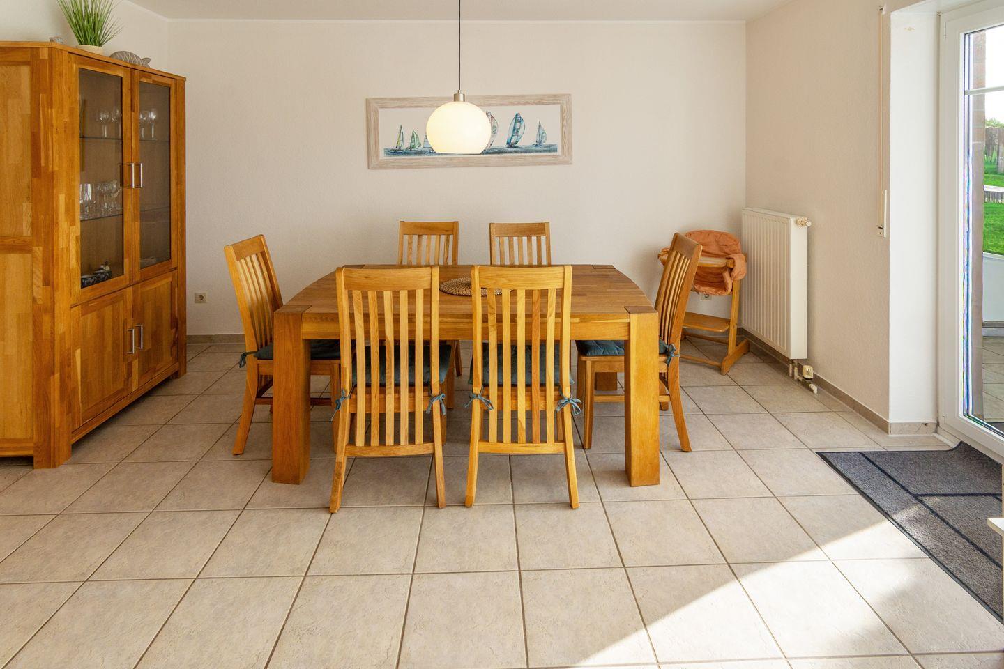Das 2000 erbaute und 2022 modernisierte Haus liegt auf einem eingezäunten Grundstück und bietet Privatsphäre und Sicherheit – ideal für Familien mit Kindern. Bollerwagen, Treppengitter, Spielzeug, Babybett, Hochstuhl und Wickelauflage sind bereits vorhanden. Im großen Garten mit Liegewiese, Gartenmöbeln, Kohlegrill und eigenem Strandkorb können Sie entspannen und den weiten Blick über Wiesen und Felder genießen – hier spüren Sie echte Nordseeruhe.