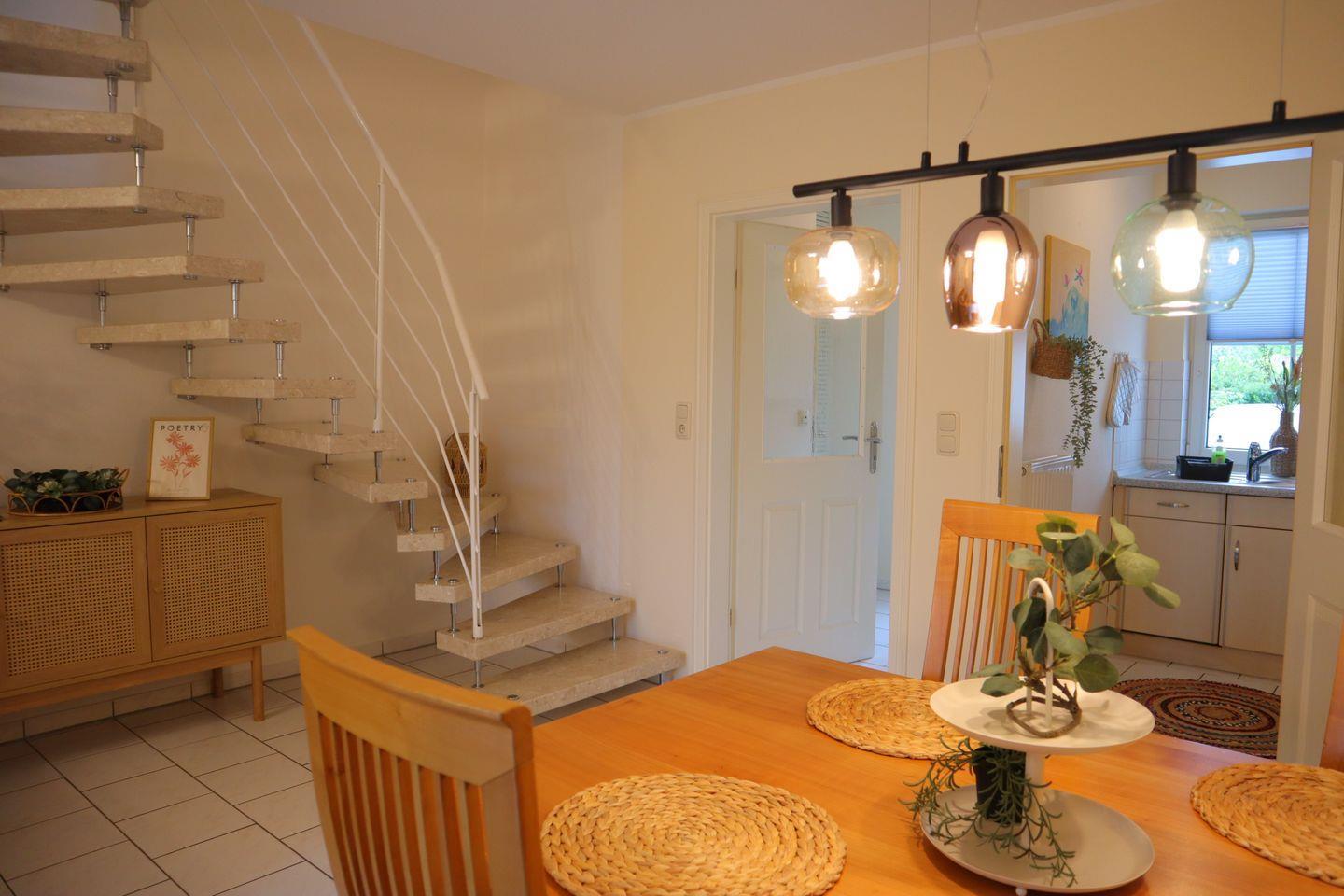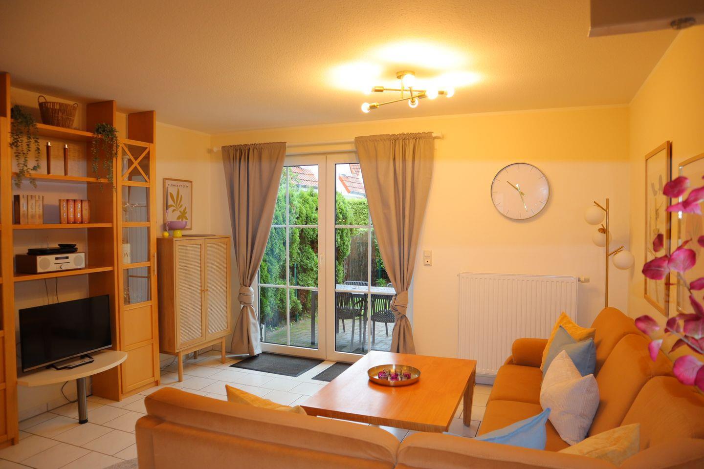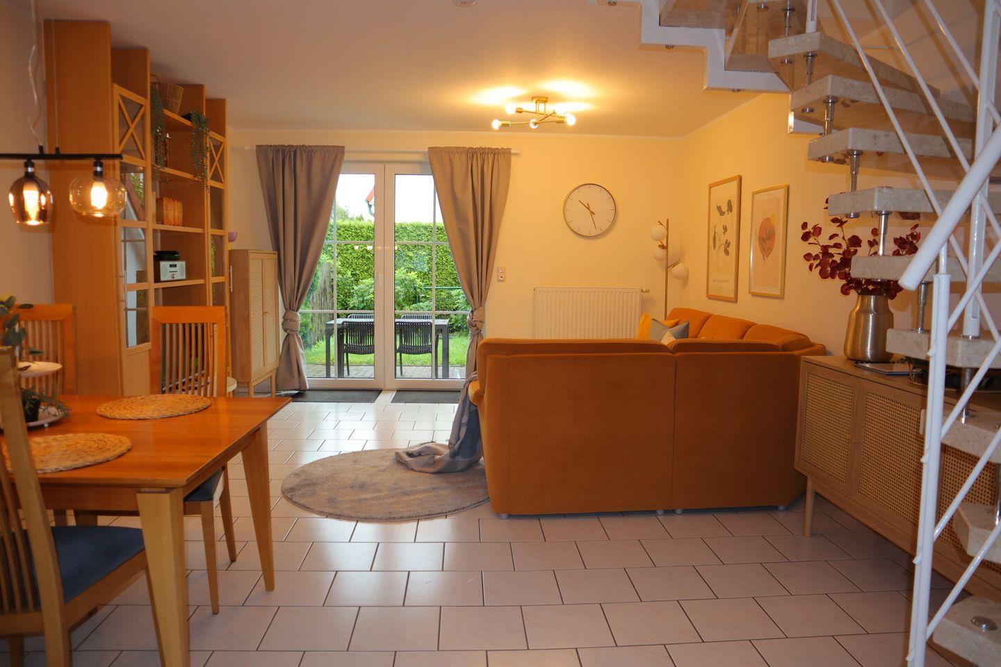 Das liebevoll eingerichtete Reihenmittelhaus bietet auf 70 m² alles, was Sie für einen erholsamen Urlaub brauchen. Zwei separate Schlafzimmer sorgen für Privatsphäre und einen erholsamen Schlaf. Der helle und großzügige Wohnbereich mit gemütlicher Sofaecke, moderner Fußbodenheizung und offener Einbauküche ist der perfekte Treffpunkt für gemeinsame Stunden. Die Küche ist mit allem ausgestattet, was das Herz begehrt – vom Ceranherd bis zum Gefrierschrank – und lädt zu genussvollen Kochmomenten ein.