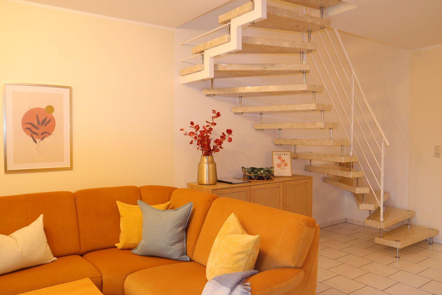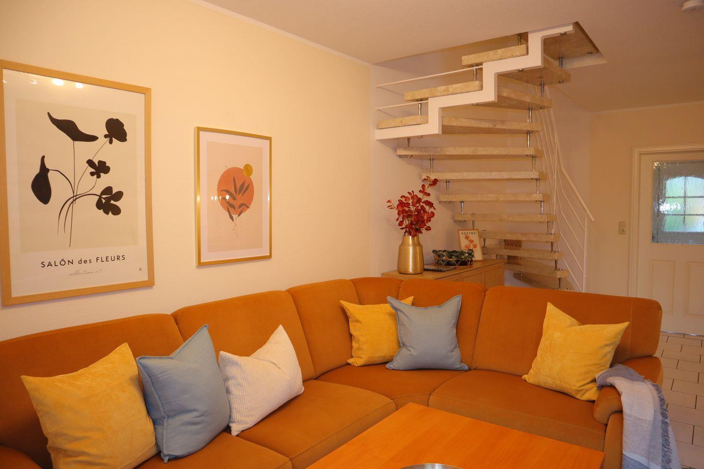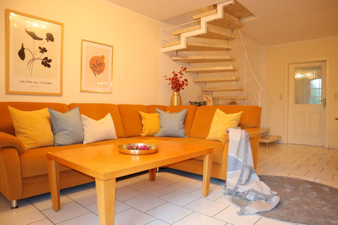 Das liebevoll eingerichtete Reihenmittelhaus bietet auf 70 m² alles, was Sie für einen erholsamen Urlaub brauchen. Zwei separate Schlafzimmer sorgen für Privatsphäre und einen erholsamen Schlaf. Der helle und großzügige Wohnbereich mit gemütlicher Sofaecke, moderner Fußbodenheizung und offener Einbauküche ist der perfekte Treffpunkt für gemeinsame Stunden. Die Küche ist mit allem ausgestattet, was das Herz begehrt – vom Ceranherd bis zum Gefrierschrank – und lädt zu genussvollen Kochmomenten ein.