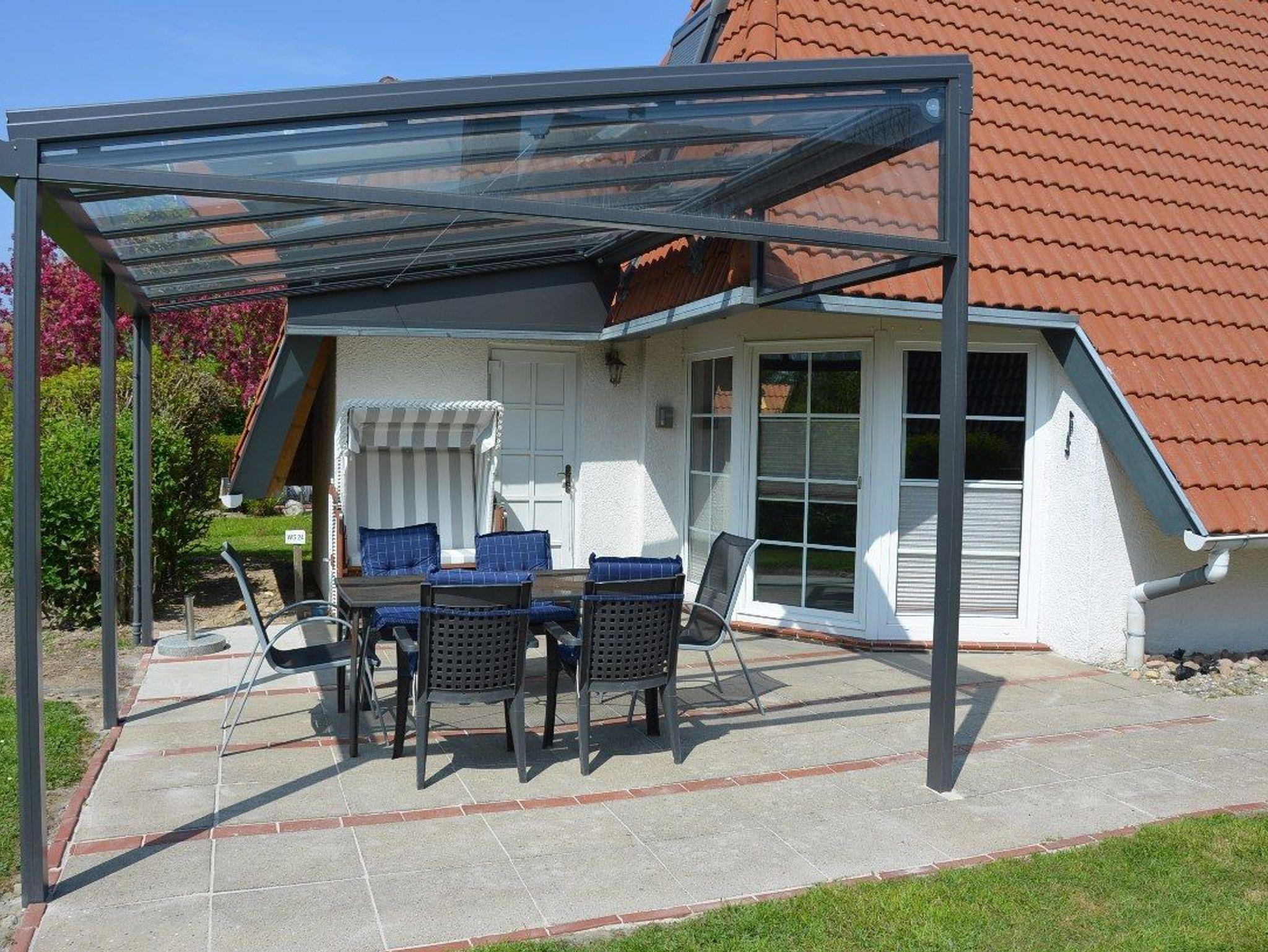 Die gemütliche Terrasse ? unter einem großzügigen Terrassendach - bietet Platz zum gemütlichen Beisammensein draussen. Wenn die Temperaturen es erlauben sogar wenn es etwas regnet. Dafür stehen ausreichend Gartenmöbel, Sonnenschutz und ein Strandkorb zur Verfügung. Zahlreiche Annehmlichkeiten wie Roller, Bollerwagen, Spieltunnel usw. halten wir für Ihre Kinder bereit. Für Ihre Fahrräder gibt?s einen hauseigenen Fahrradständer.