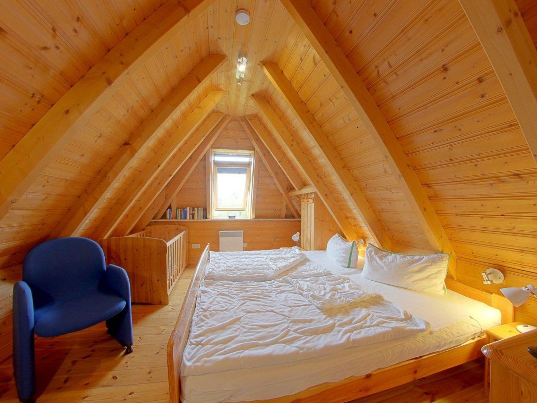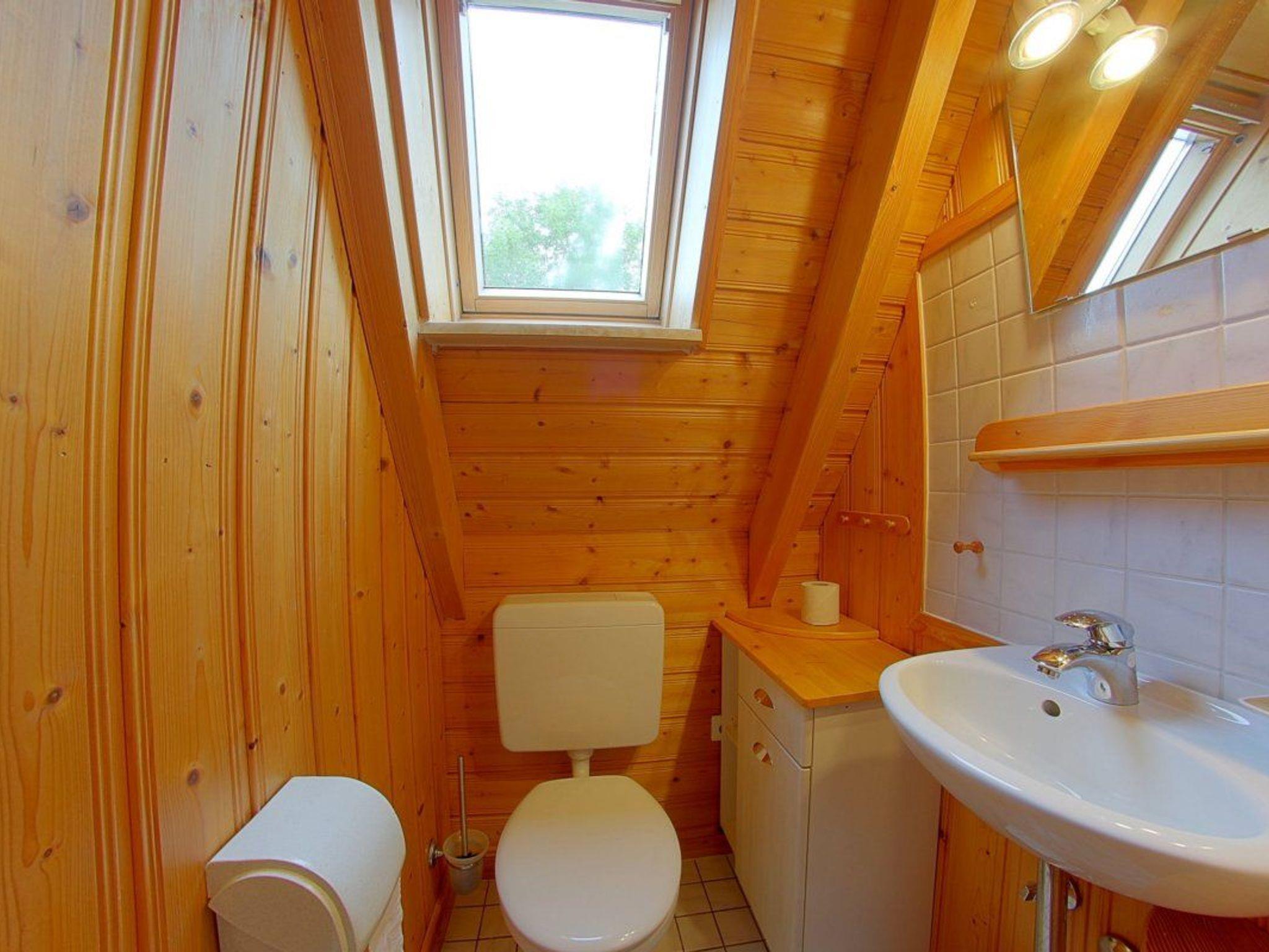 Im Obergeschoss sind die beiden Schlafzimmer mit 4 Betten sowie Kinderzustellbett. Außerdem ein 2. WC mit Waschbecken.