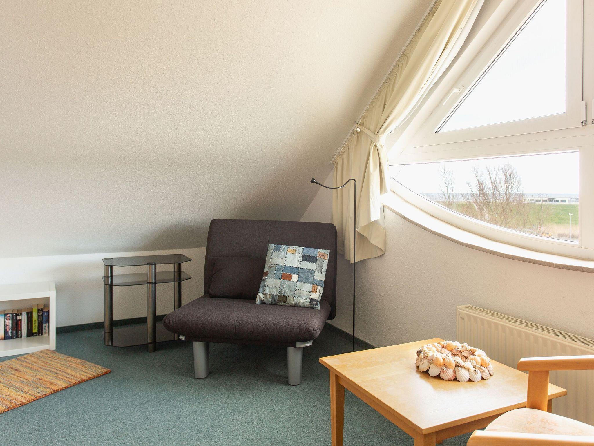 Die Meerblick-Wohnung De Luuvsiet ist 65 qm groß und geht über 2 Etagen. Auf der unteren Ebene hat sie ein Schlafzimmer, ein großes Badezimmer mit Badewanne, WC und Waschbecken und Fenster, ein großes Wohnzimmer mit Essecke sowie eine Küche mit Geschirrspüler, Backofen, Ceranfeld, Kaffeemaschine und Kaffeepadmaschine. Ein LCD-Fernseher, eine Hifi-Anlage sowie ein DVD-Player sind ebenfalls vorhanden.