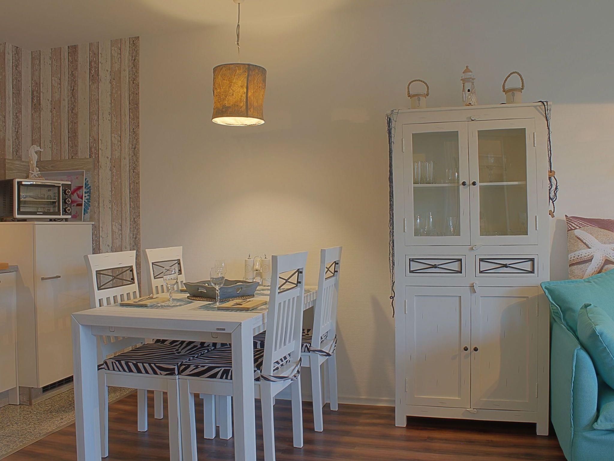 Das Appartement verfügt über eine Terrasse mit Tisch und 4 Stühlen. Das Bad ist zeitlos modern. Ein Stellplatz gehört zur Wohnung, Fahrradhaus für Gäste vorhanden.