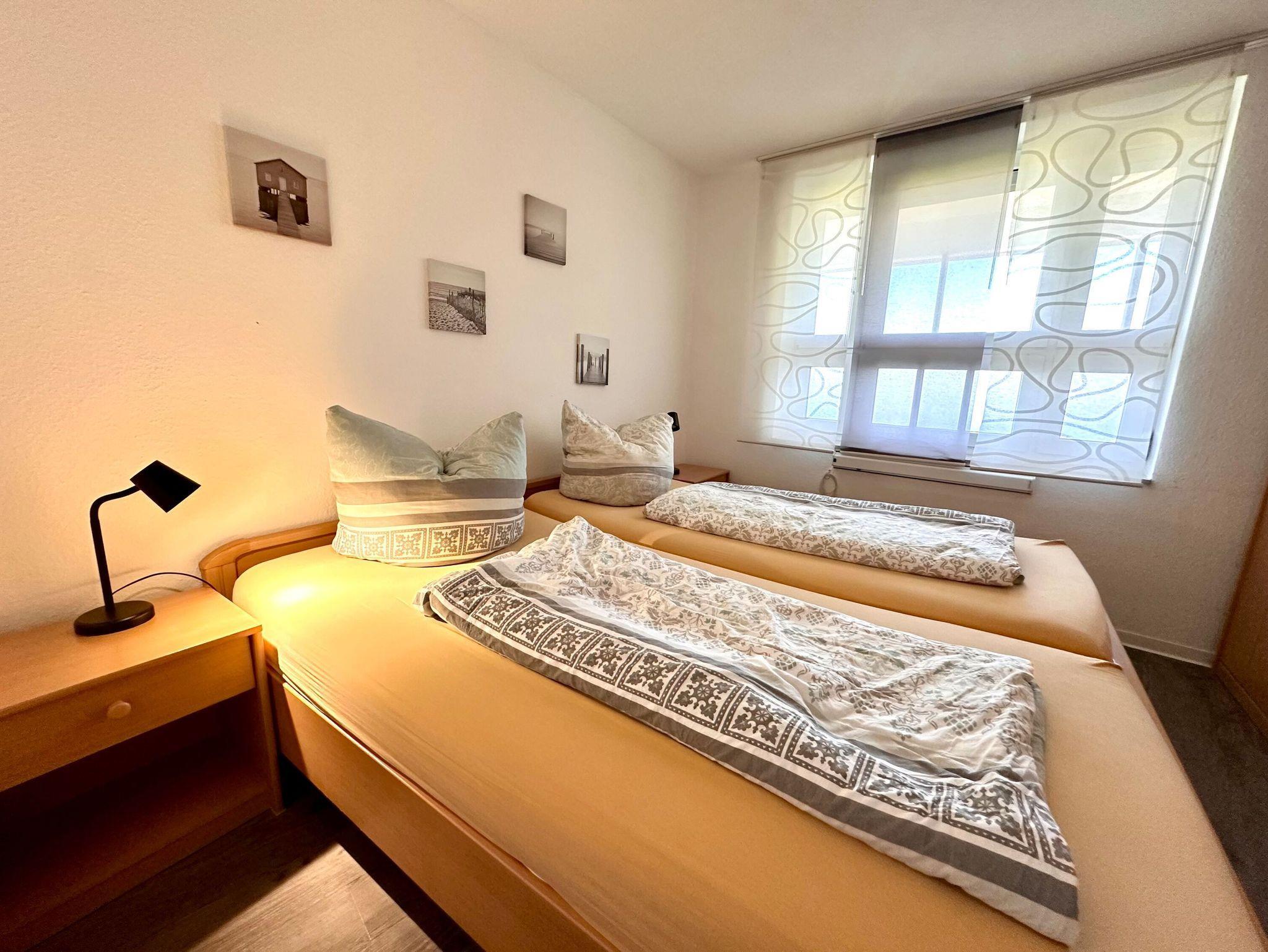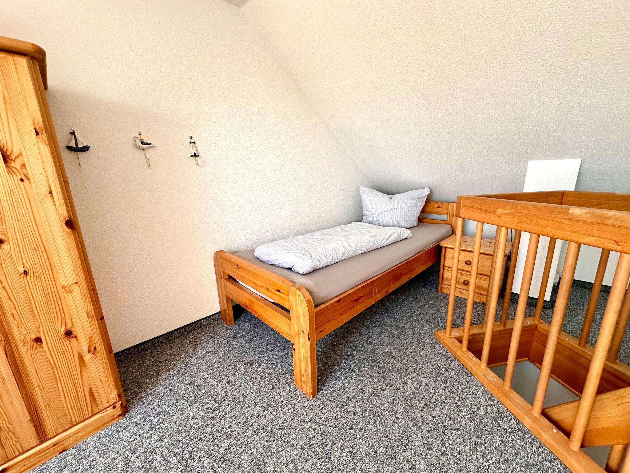 Unsere komplett ausgestattete Komfortferienwohnung T304 ist ca. 61qm groß und verfügt über 2 Schlafzimmer einmal Doppelbett, einmal zwei Einzelbetten), 1 Wohnzimmer, Sat-TV, Küchenzeile mit Geschirrspüler und Backofen, Bad mit Dusche und Badewanne, einen großen Balkon, Haustiere sind erlaubt. Die Wohnung geht über 2 Etagen, vom Wohnzimmer aus geht eine Spartreppe nach oben zum 2. Schlafzimmer.