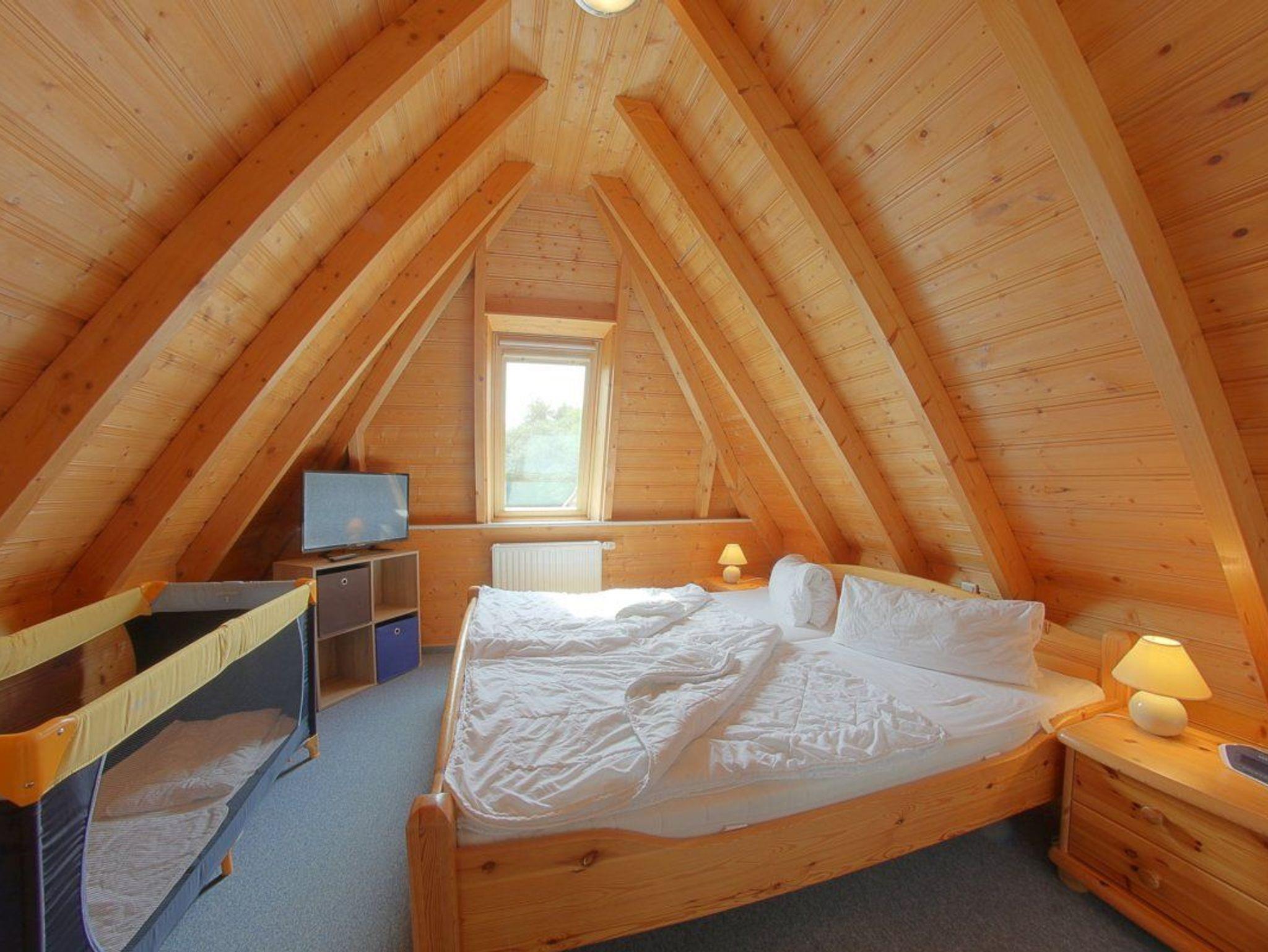 Im Obergeschoss gibt es ein Elternschlafzimmer mit Doppelbett und TV, sowie ein weiters Schlafzimmer mit 2 Einzelbetten. Für die lütten Gäste stehen Reisebett und Hochstuhl bereit.