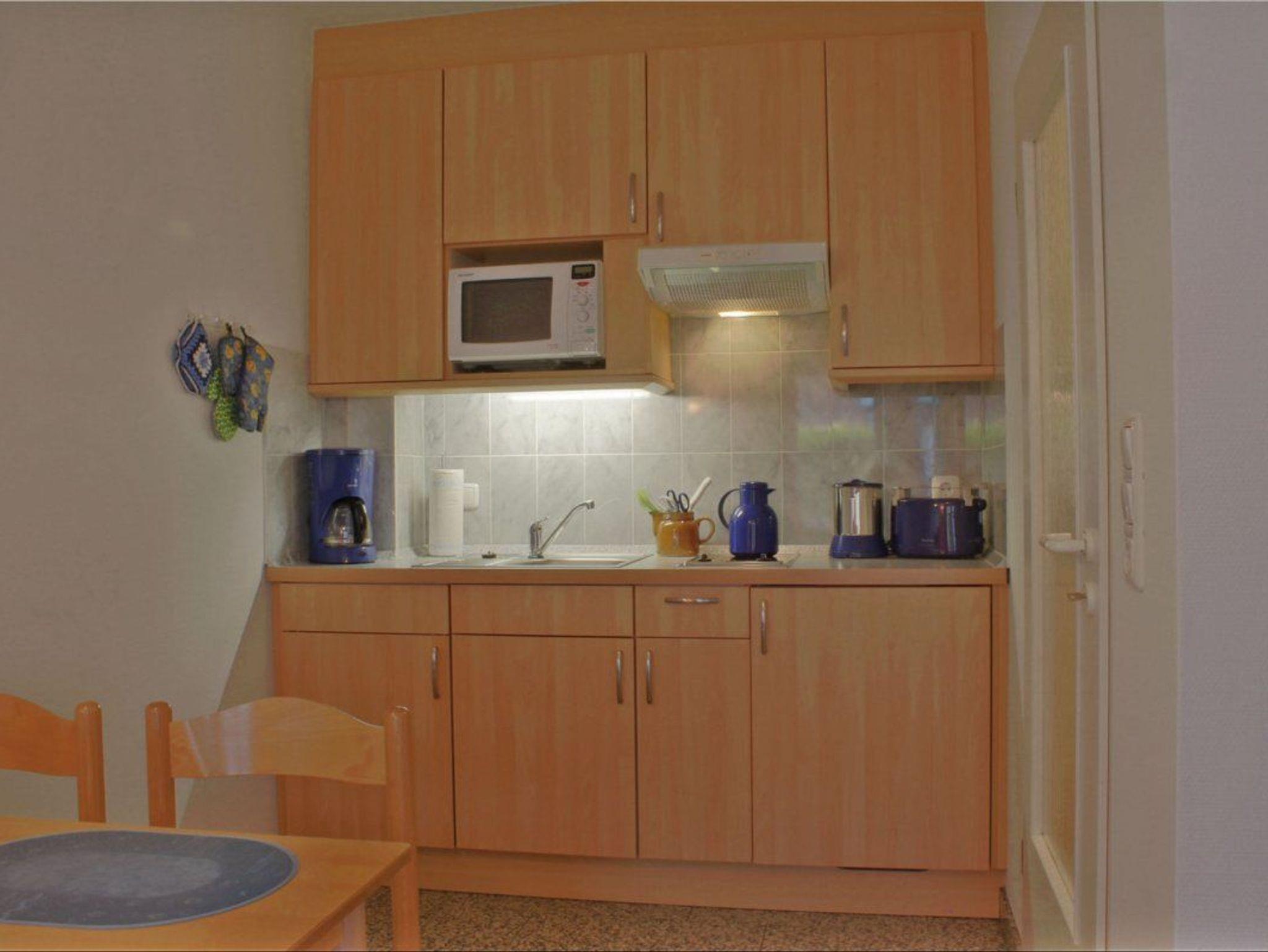 Die Küchenzeile ist mit allem eingerichtet, was man so braucht. Von der Kaffeemaschine bis zum Toaster ist alles vorhanden. Münzwaschautomaten und Trockner sind in jedem Haus.