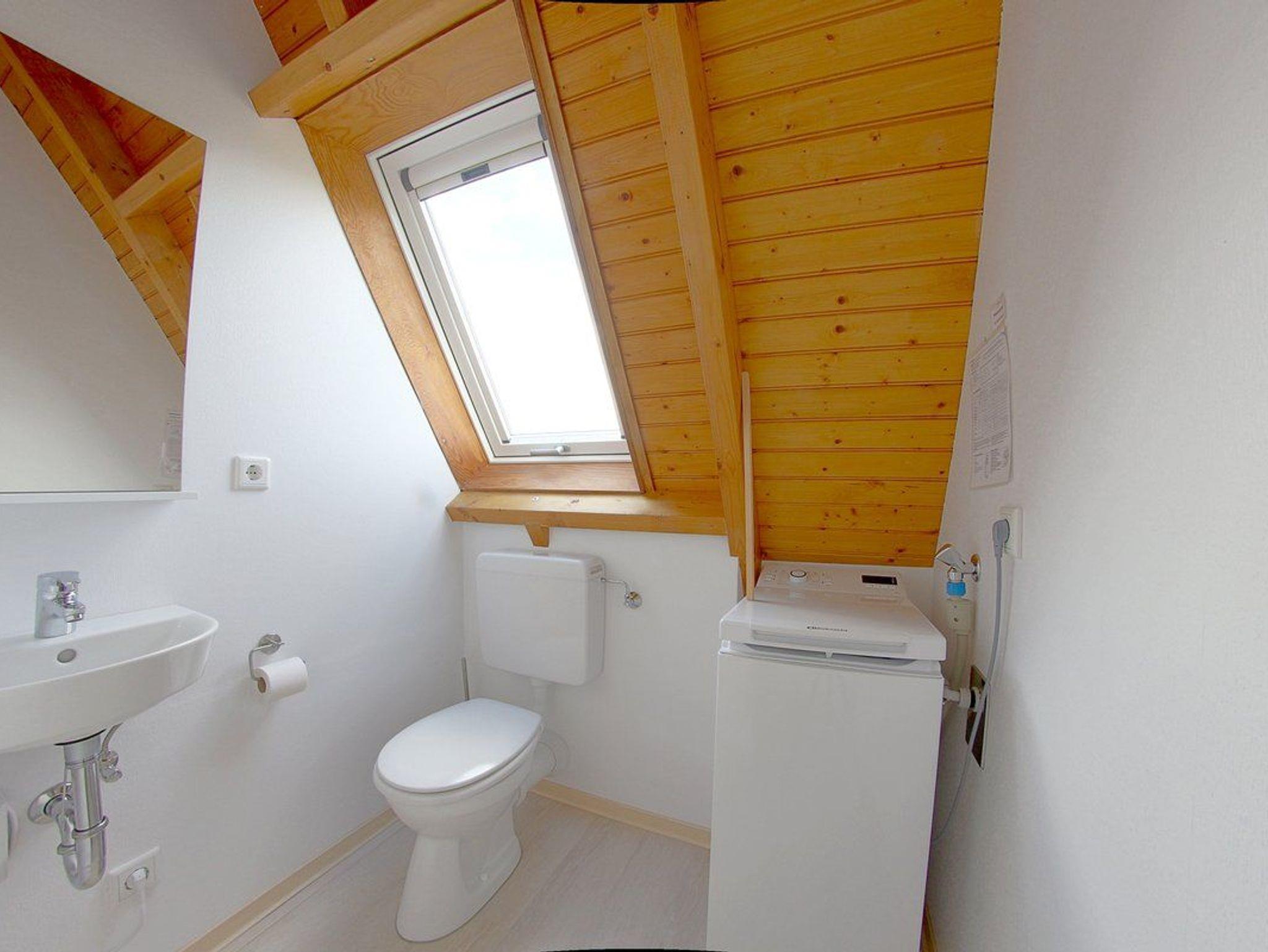 Im oberen Bereich finden Sie ein Schlafzimmer mit Doppelbett und TV, sowie ein Schlafzimmer mit 2 Einzelbetten. Ein zusätzliches WC mit Waschbecken und Waschmaschine befindet sich ebenfalls im Obergeschoss. In den Wandschränken ist ein Kinderreisebett und eine Kinder-Treppensicherung verfügbar und Platz für ihr Reisegepäck.