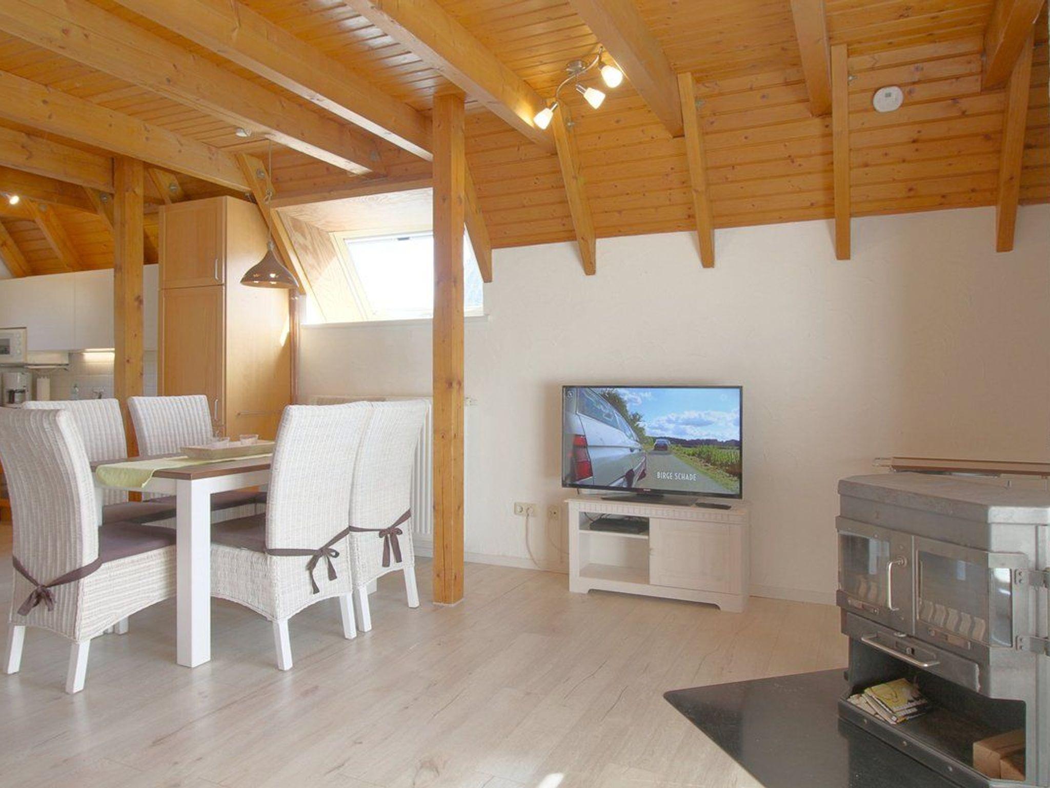 Der Wohnbereich mit Kaminofen, großem Flat-TV, Telefon und kostenlosem Internet (Glasfaseranschluss) bietet genügend Platz für die Familie. Einen Hochstuhl finden Sie ebenfalls im Haus.