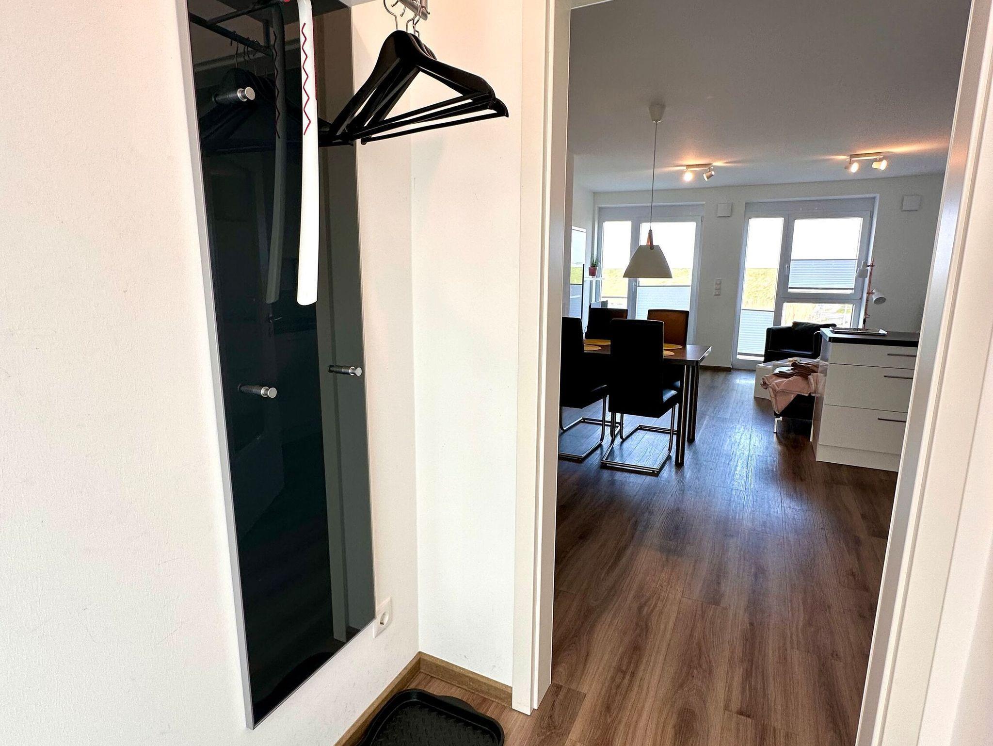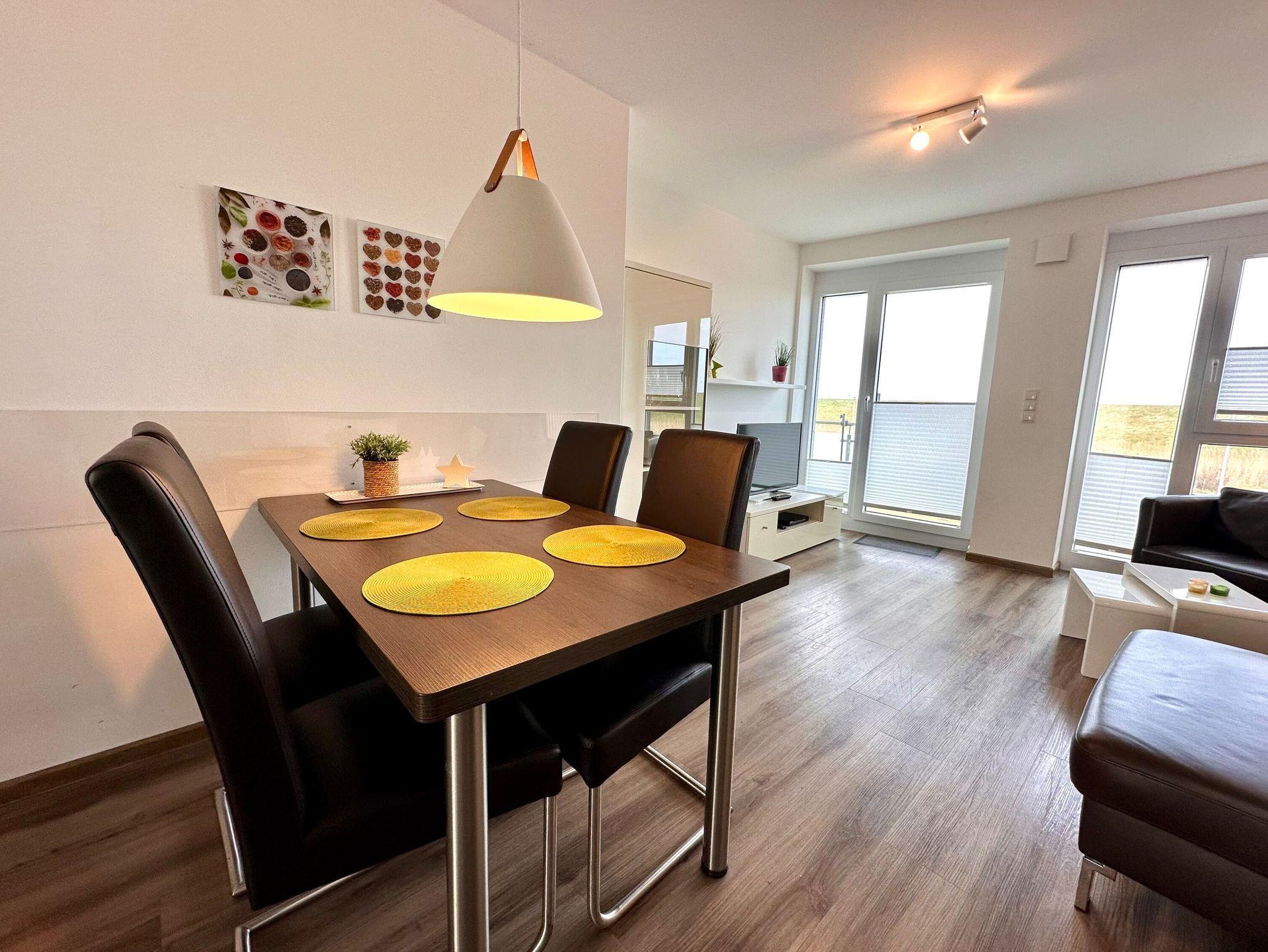 Die neu und modern eingerichtete Wohnung liegt in der 2. Etage im Haus Carna, das 2019 fertig gestellt wurde,[nbsp] und hat eine Größe von 63 qm. Die Wohnung hat ein Wohnzimmer mit Ledercouch, moderner Essecke, Küchenzeile, zwei Schlafzimmer, Bad mit ebenerdiger Dusche und einen großen Balkon (Süd-West) von 8 qm.
