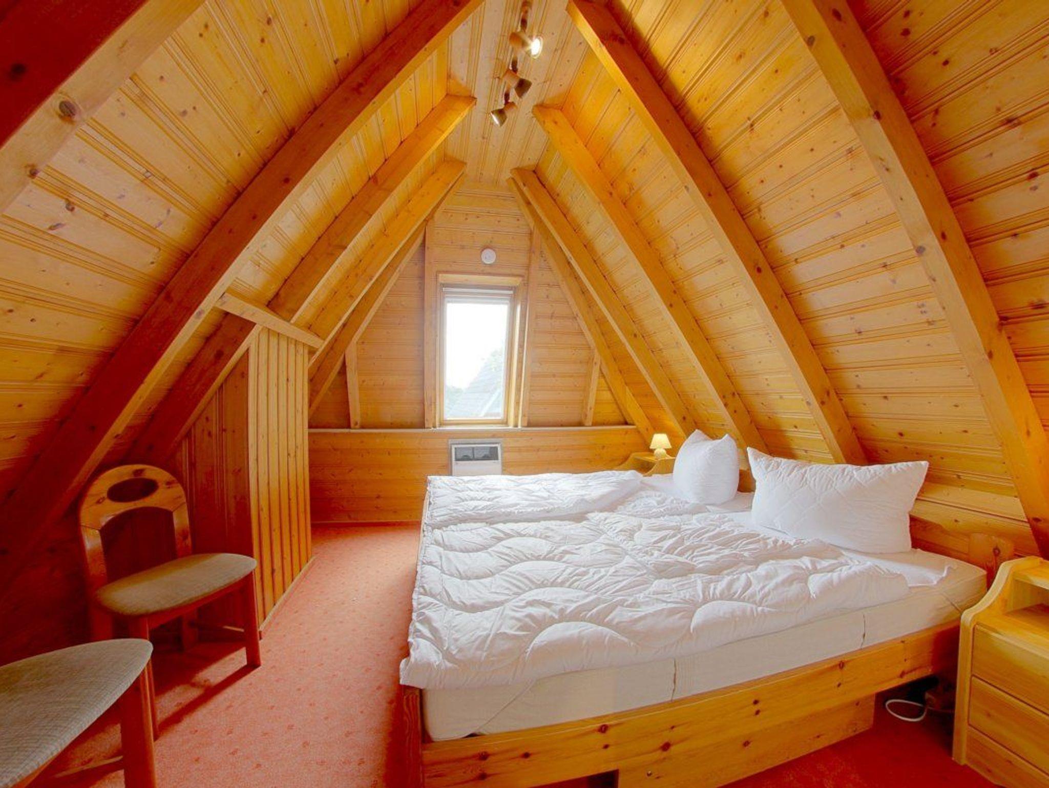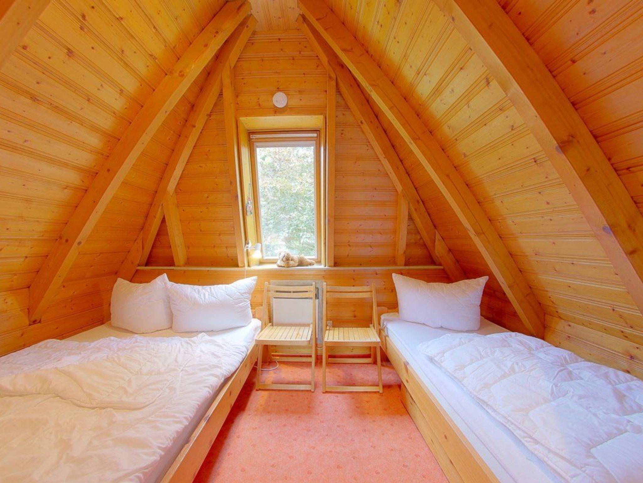 Im Obergeschoss steht Ihnen ein Schlafzimmer mit Doppelbett ( 2 x 2m ), sowie ein Schlafzimmer mit französischem Bett ( 1,50 x 2 m) und ein Einzelbett zur Verfügung, sowie ein separates WC mit Waschbecken. Teppichboden in den Schlafräumen.