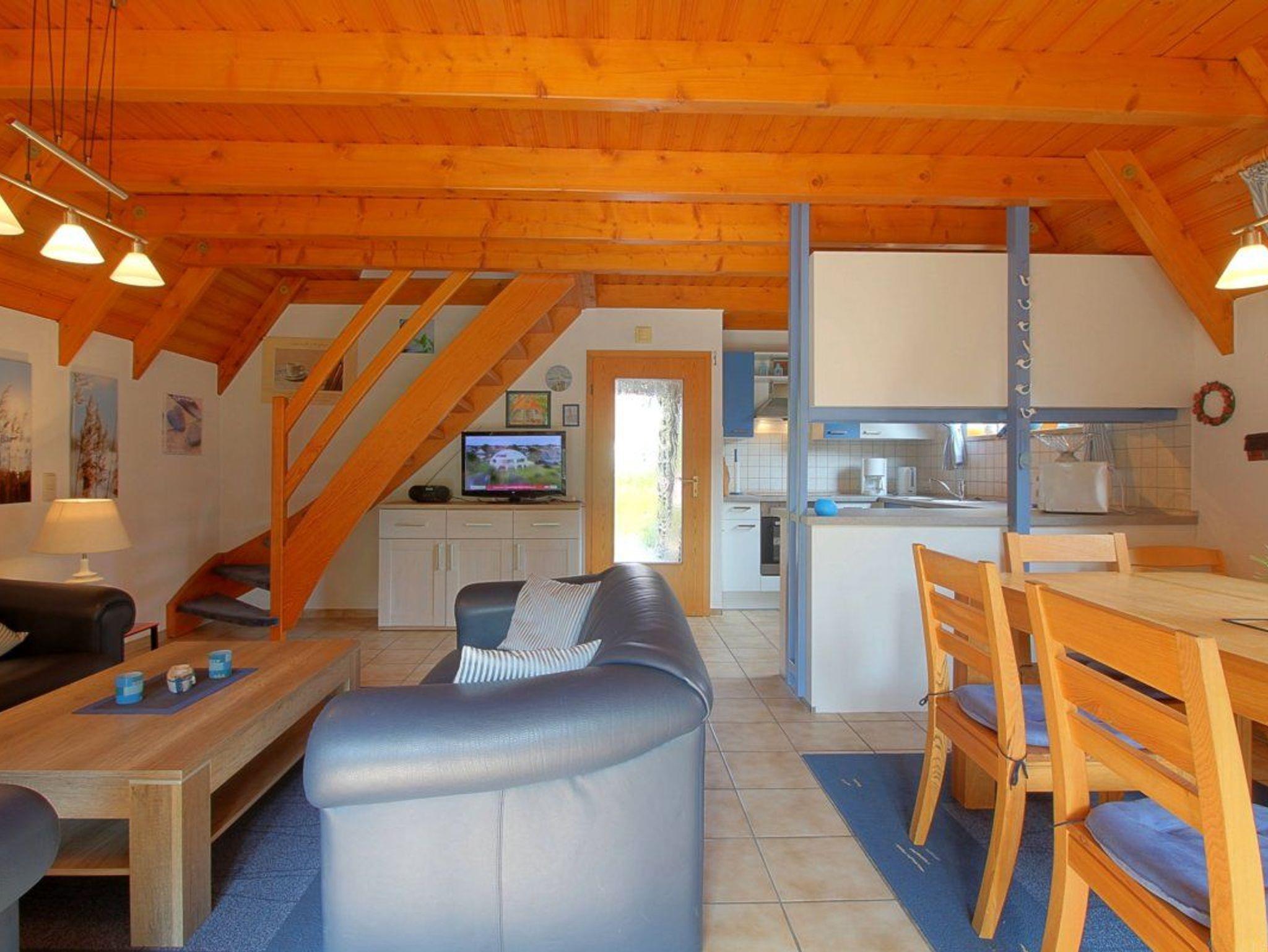 Im gefliesten Erdgeschoss befindet sich der offene Wohn- Essbereich mit Kaminofen und Flachbild-TV.[nbsp] In der komplett ausgestatteten Küche mit Geschirrspüler kann der Smutje tolle Gerichte zaubern. Vom Wohnraum aus geht es direkt auf die uneinsehbare Terrasse mit Gartenmöbeln.