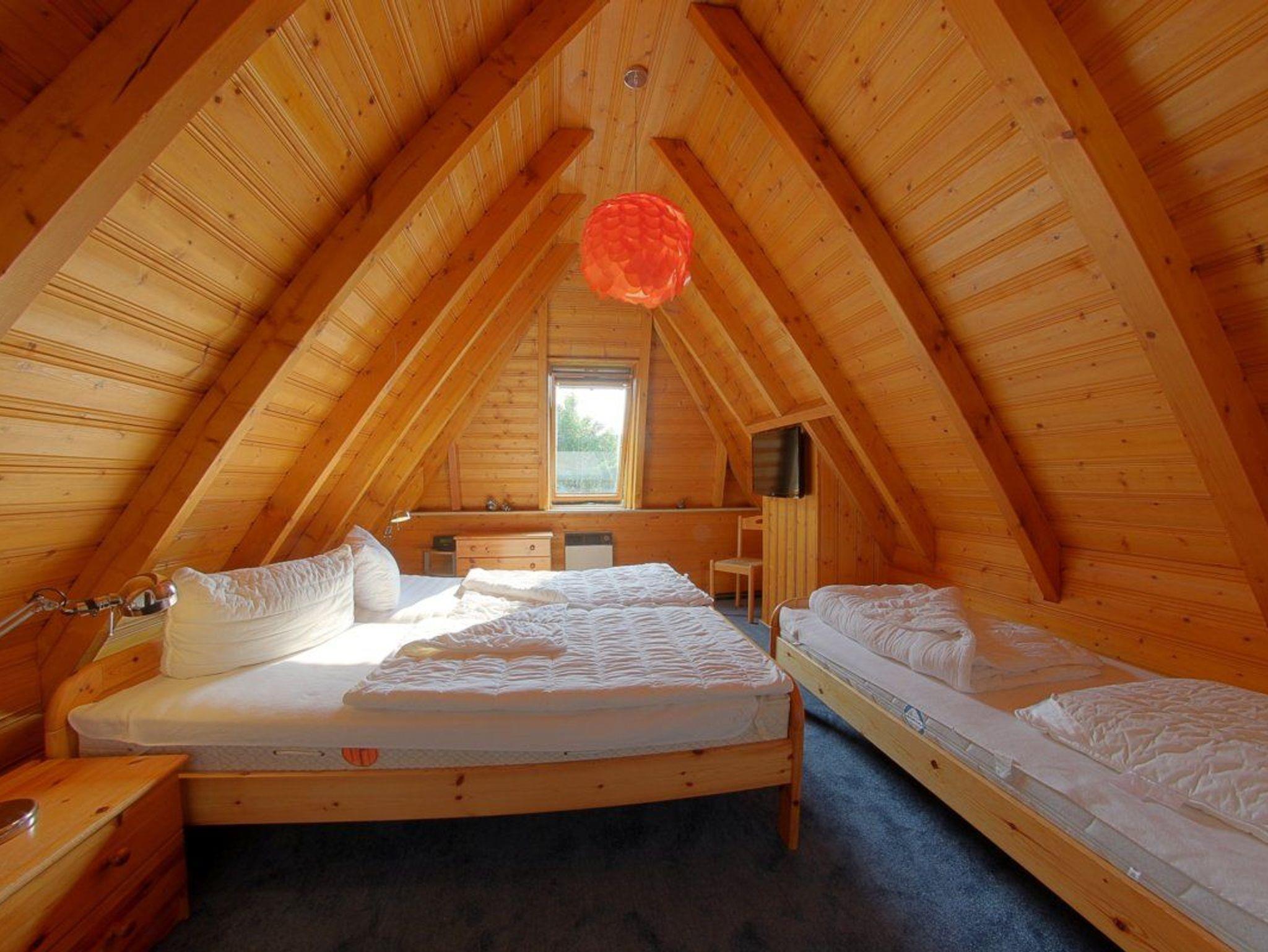 Im Obergeschoss erwartet Sie ein Elternschlafzimmer mit Doppelbett, einem Einzelbett und TV, sowie ein Schlafzimmer mit zwei Einzelbetten.