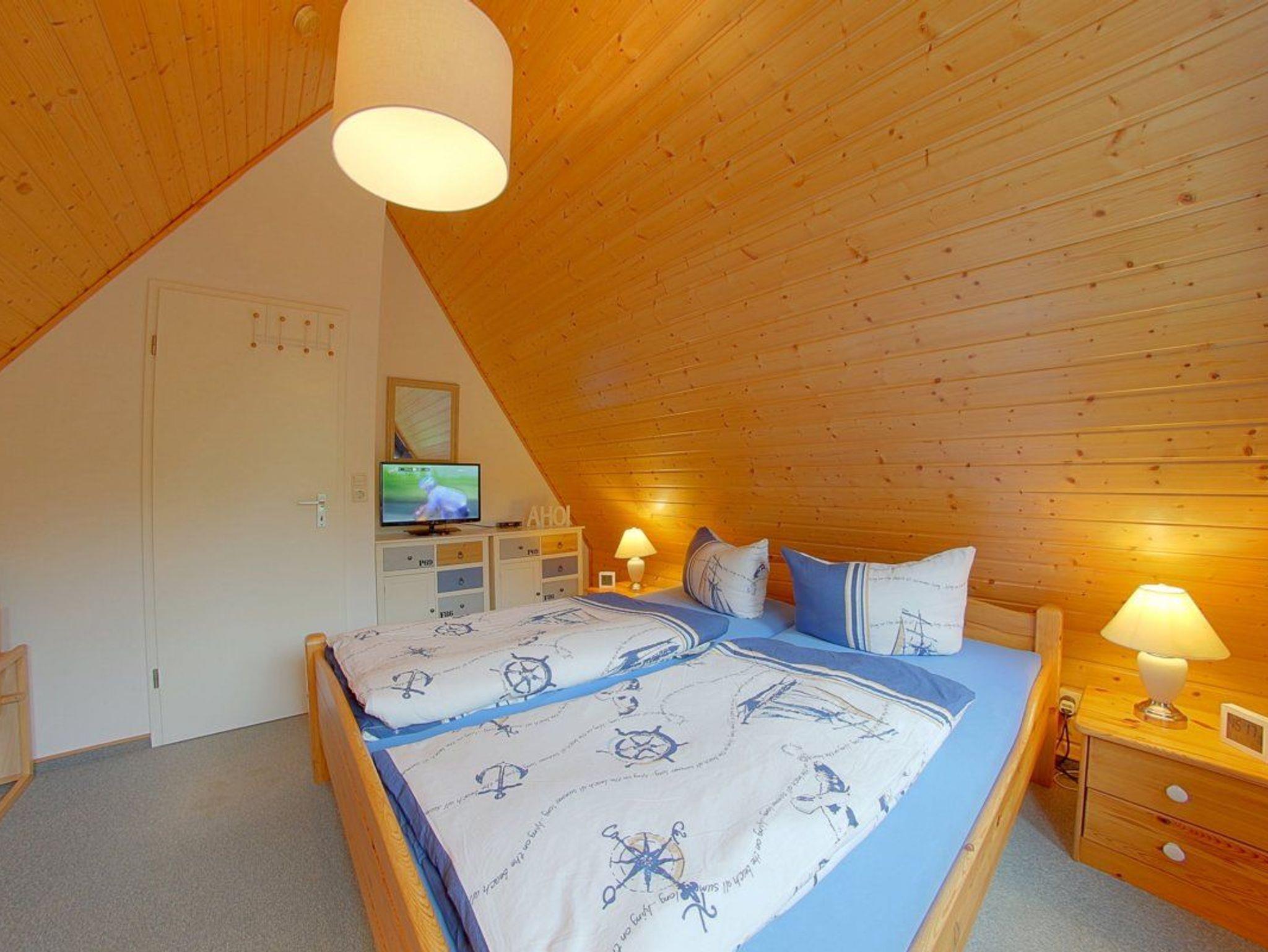 Ein Schlafzimmer mit Doppelbett und Flachbild TV mit integriertem DVD-Player, ein Schlafzimmer mit zwei Einzelbetten und Flachbild TV mit integriertem DVD-Player im Obergeschoß stehen Ihnen hier im Haus zur Verfügung. Die Schlafräume verfügen über Verdunkelungsmöglichkeit. Alle Fenster mit Insektenschutz.
