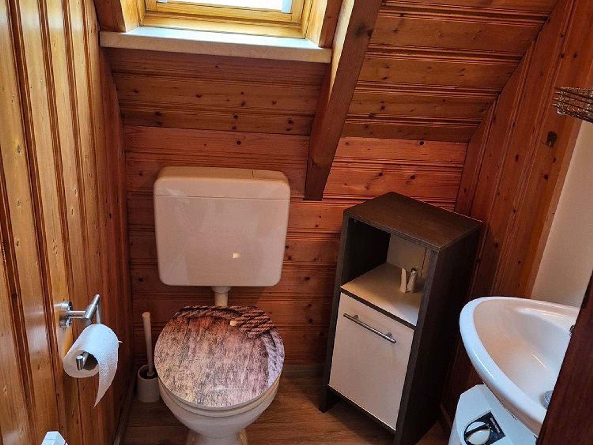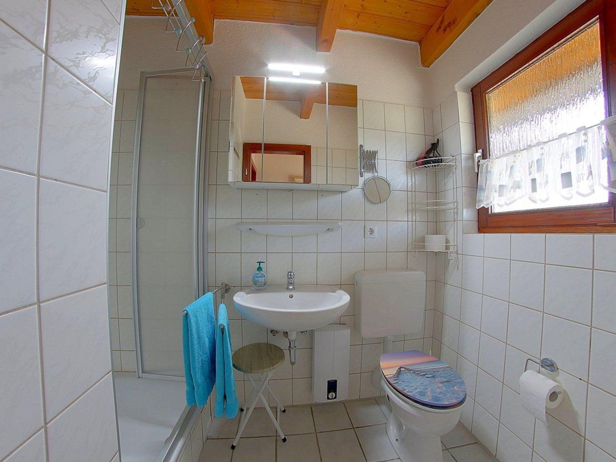 Das Badezimmer mit Fön und Regendusche befindet sich im Erdgeschoss, ein 2. WC ist im Obergeschoss vorhanden.