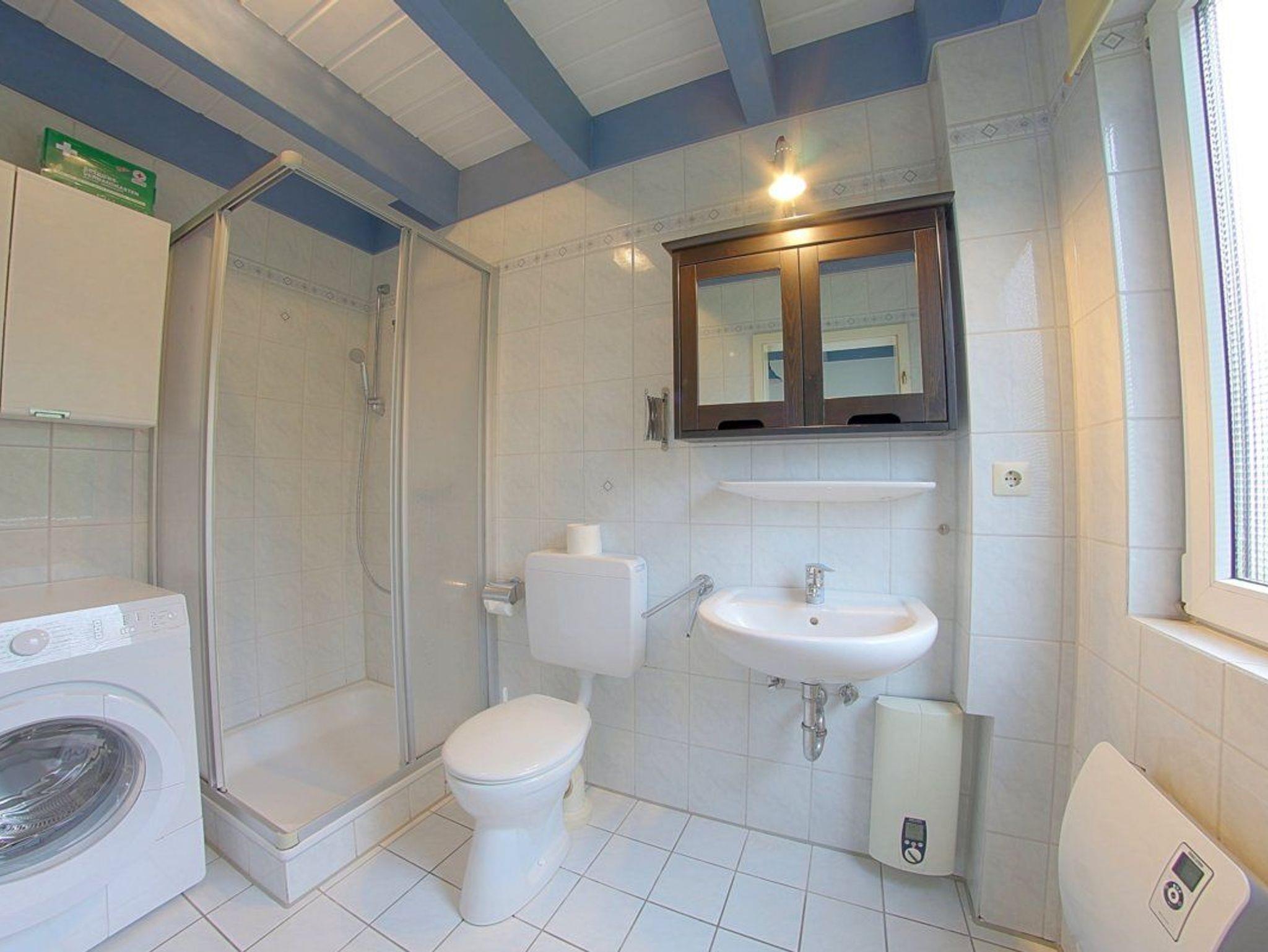 Das geräumige Tageslichtbad ist mit einer Dusche, WC usw. eingerichtet.
