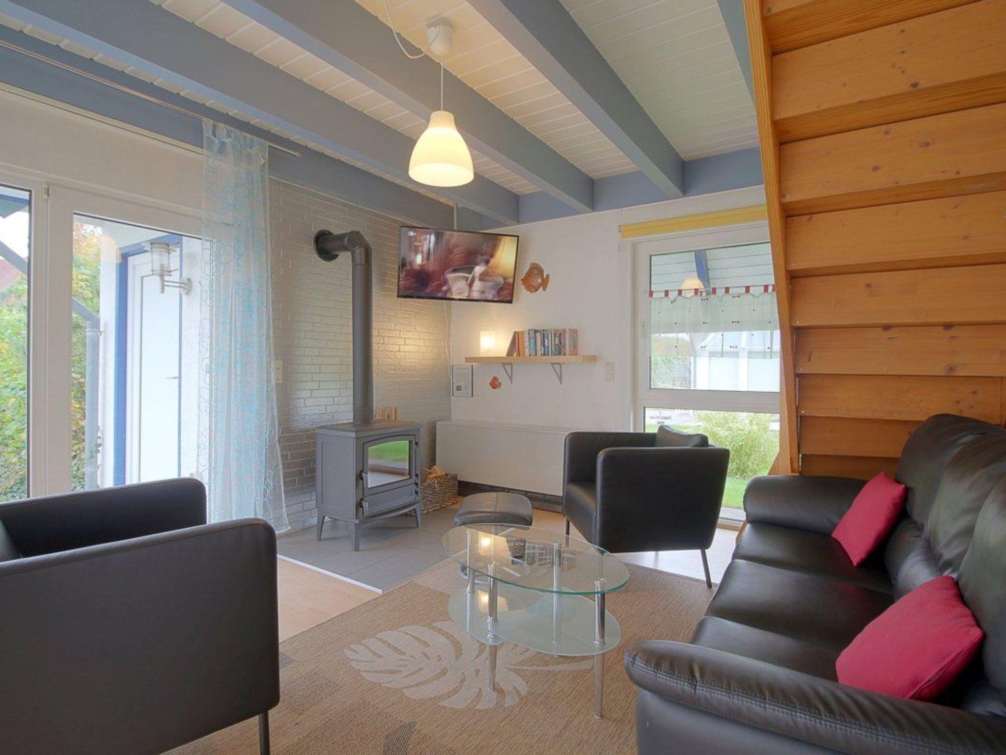 Im Erdgeschoss befinden sich der Flur mit Garderobe, das Duschbad/WC ein geräumiges Wohn-/Esszimmer mit offener Küche. Im Obergeschoss befinden sich 2 Schlafzimmer.Die Küche ist komplett ausgestattet für 5 Personen mit Geschirr und Bestecken, Herd mit Cerankochfeld, Backofen, Geschirrspüler, Mikrowelle, Wasserkocher, Kaffemaschine, Handrührer, Toaster usw.