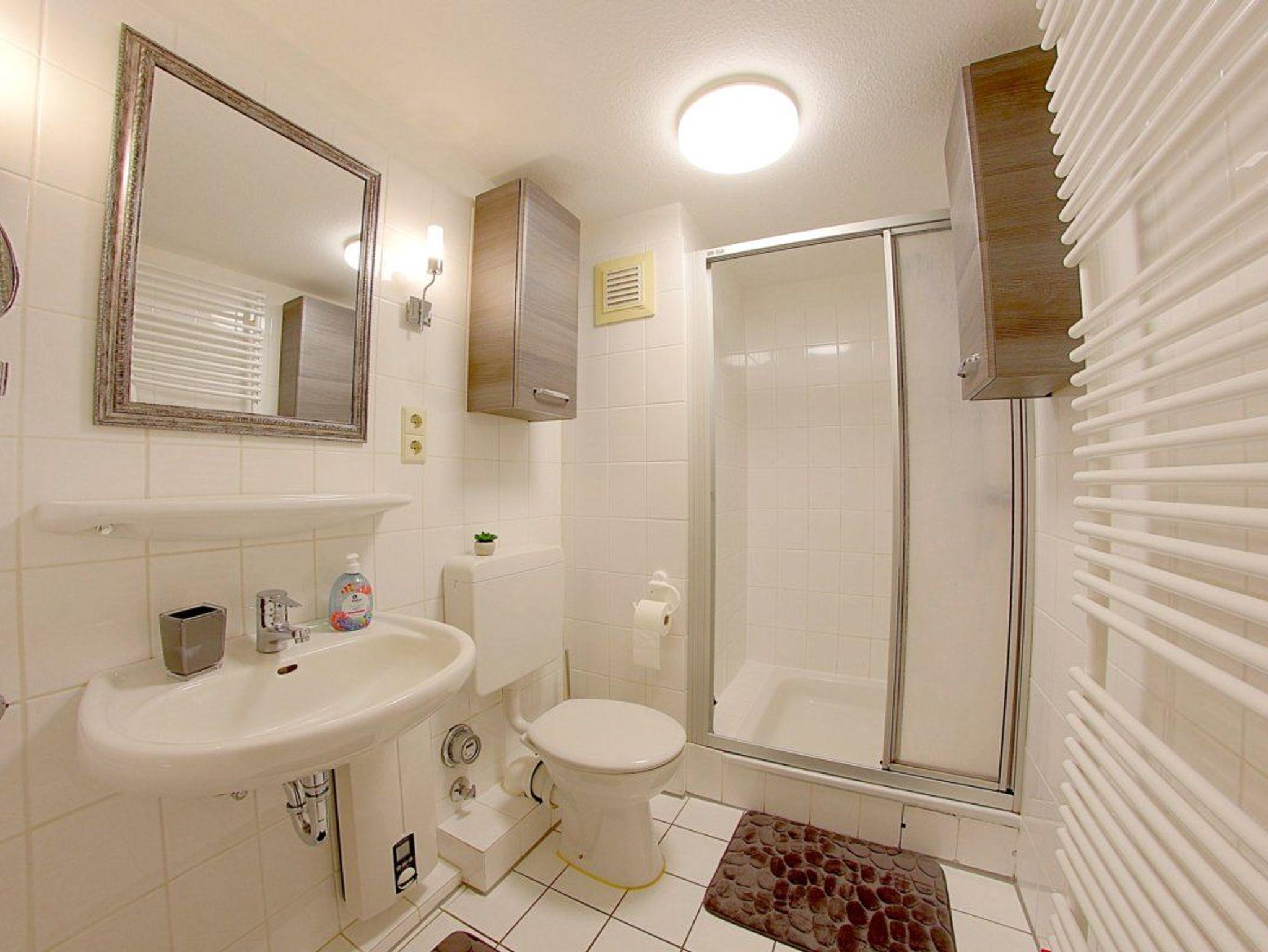 Ein helles Duschbad mit Handtuchheizung und WC ist natürlich auch vorhanden.