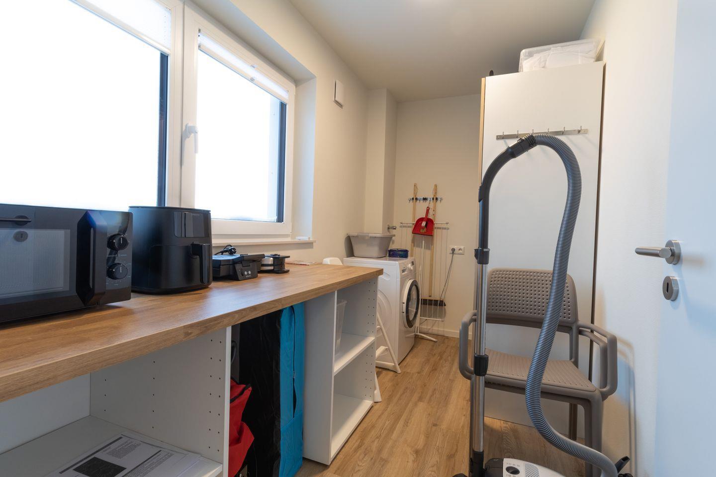 Freue dich auf WLAN, einen eigenen Parkplatz direkt am Haus und einen Abstellraum für Fahrräder. Ein Waschraum mit Waschmaschine steht im Haus zur Gemeinschaftsnutzung bereit.