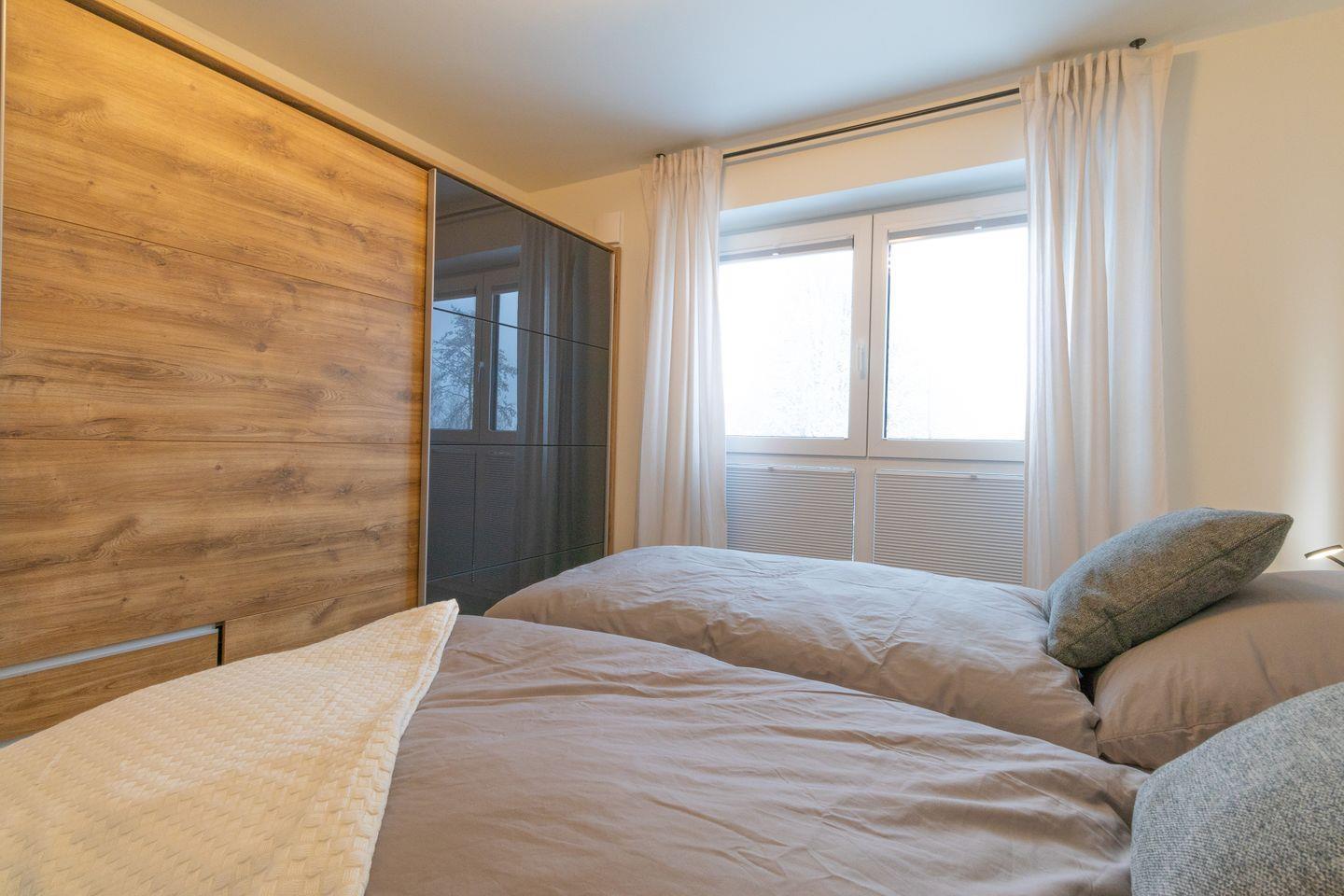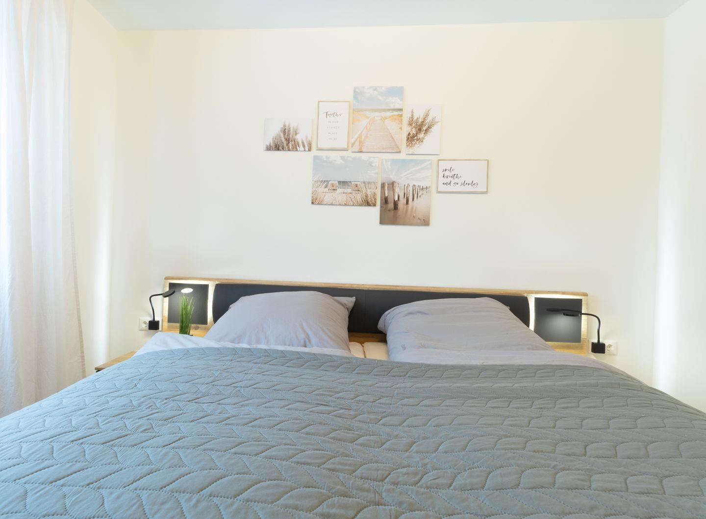 Im separaten Schlafzimmer erwartet dich ein hochwertiges Doppelbett für erholsame Nächte. Verdunkelungsplissees sorgen für einen ruhigen Schlaf. Hier kannst du entspannen und neue Energie tanken.