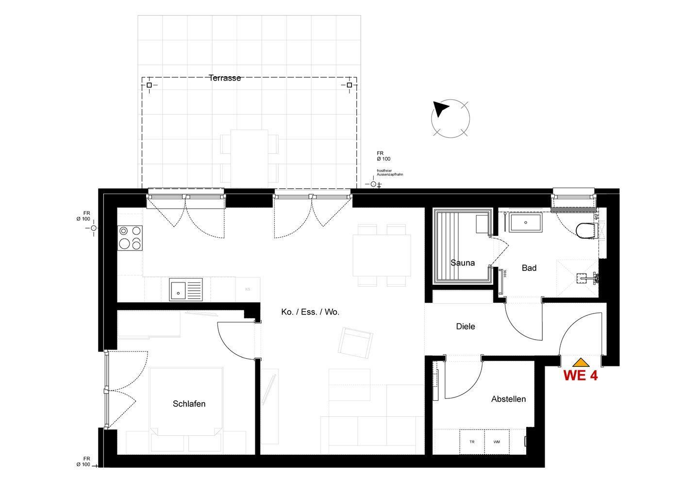 Die Erdgeschosswohnung ist barrierefrei erreichbar. Ein eigener Parkplatz direkt am Haus sowie ein abschließbarer Fahrradraum stehen dir zur Verfügung. Der Check-in erfolgt bequem und flexibel per Schlüsseltresor.