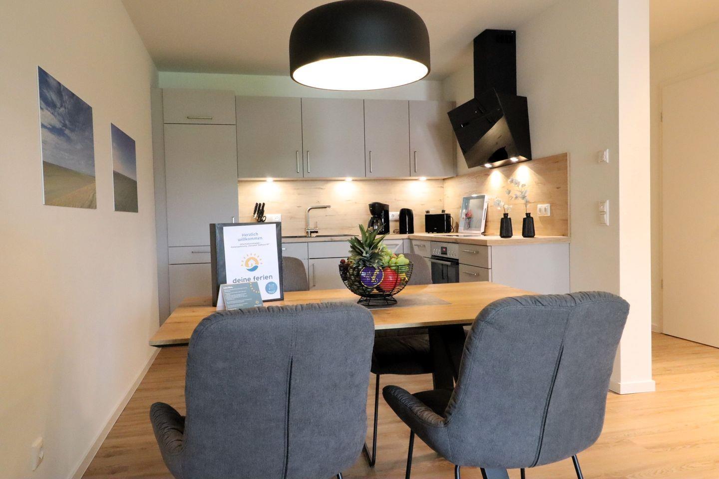Ein Aufzug bringt euch bequem in die 1. Etage. Euer Fahrzeug parkt ihr direkt am Haus, Fahrräder finden im abschließbaren Abstellraum Platz. WLAN steht kostenfrei zur Verfügung. Der Check-in erfolgt kontaktlos über einen Schlüsseltresor. Zwei Hunde sind gegen Gebühr willkommen – ideal für den Urlaub mit Fellnase!