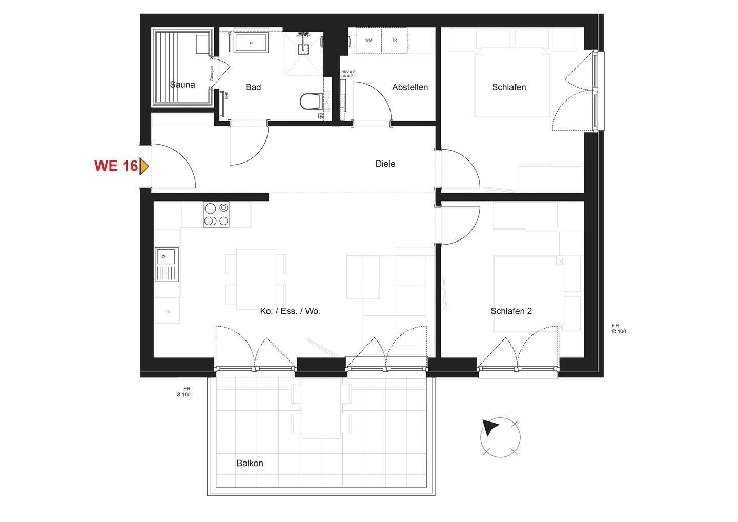 Deine persönliche Auszeit beginnt im modernen Badezimmer mit bodentiefer Dusche und eigener Sauna. Perfekt für gemütliche Winterabende oder nach einem aktiven Tag am Strand – hier findest du Entspannung pur.