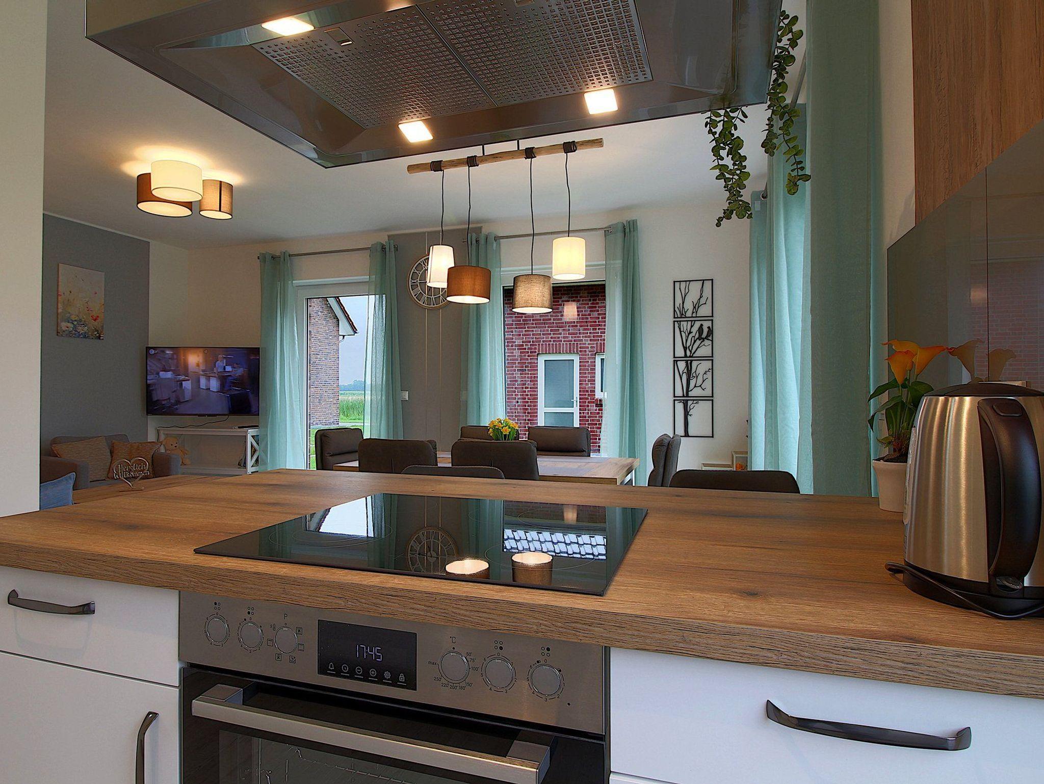 In der Küche mit Einbauküche und Kochinsel könne Sie leckere Mahlzeiten zubereiten, für den Smutje ist alles an Kochgeschirr vorhanden.