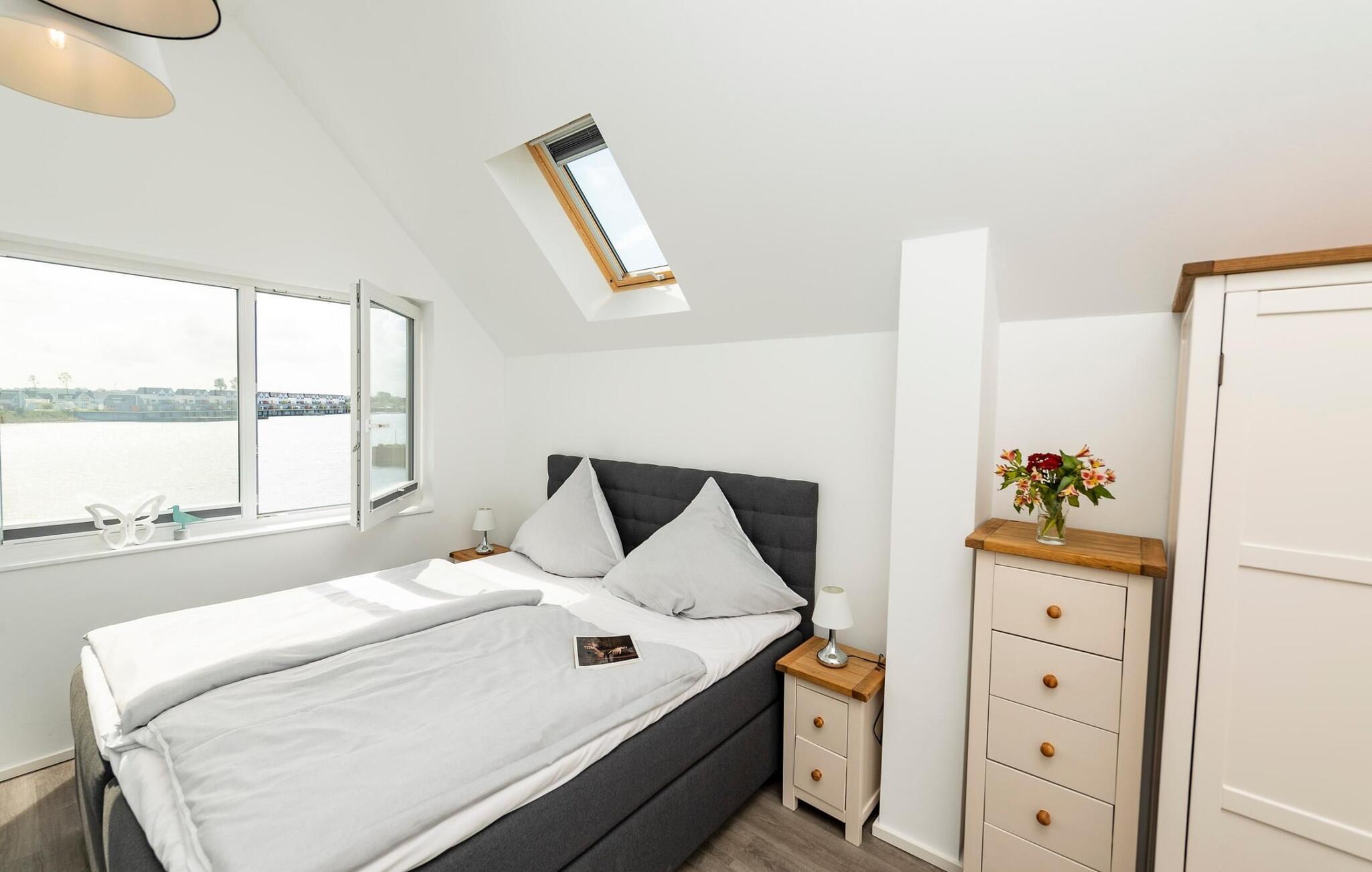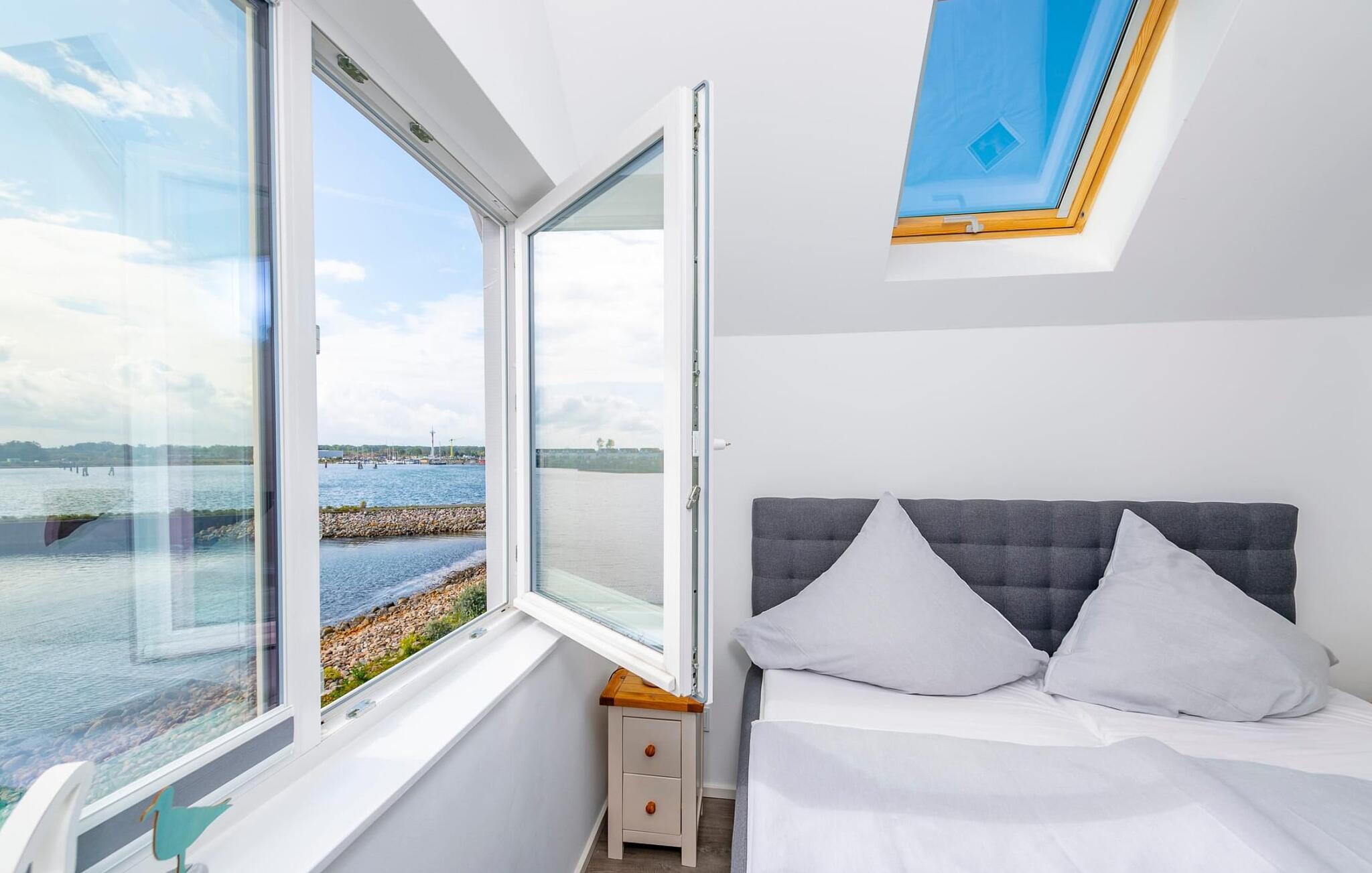 Det store soveværelse har en fantastisk udsigt over sejl- og sportsbådshavnen i OstseeResort Olpenitz og en hyggelig dobbeltseng. Et ekstra fjernsyn sørger for underholdning her. Det andet soveværelse har to enkeltsenge, der kan skubbes sammen og en fascinerende udsigt over Slien. Dette soveværelse er også udstyret med et tv. To ekstra sovepladser er tilgængelige på den komfortable sovesofa i opholdsstuen.